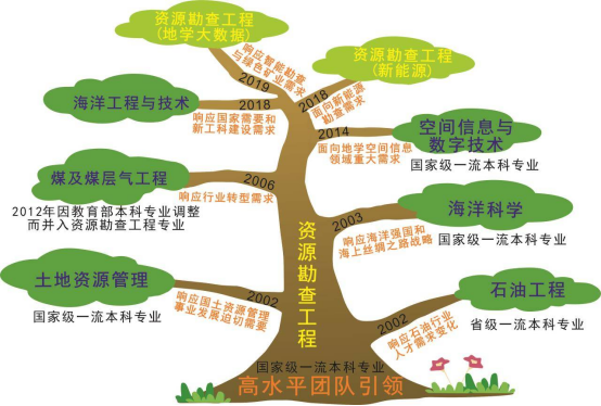 依托传统优势专业“资源勘查工程”建成的“1+6”资源类专业群