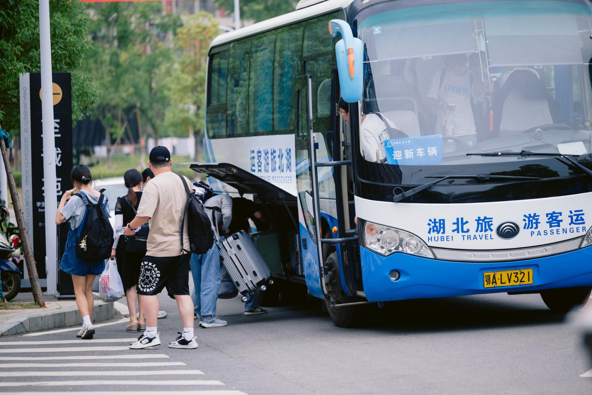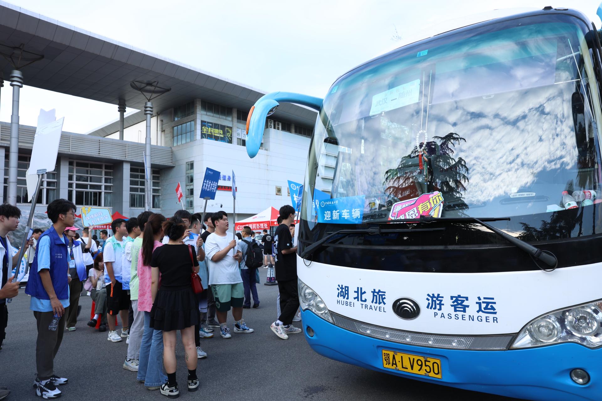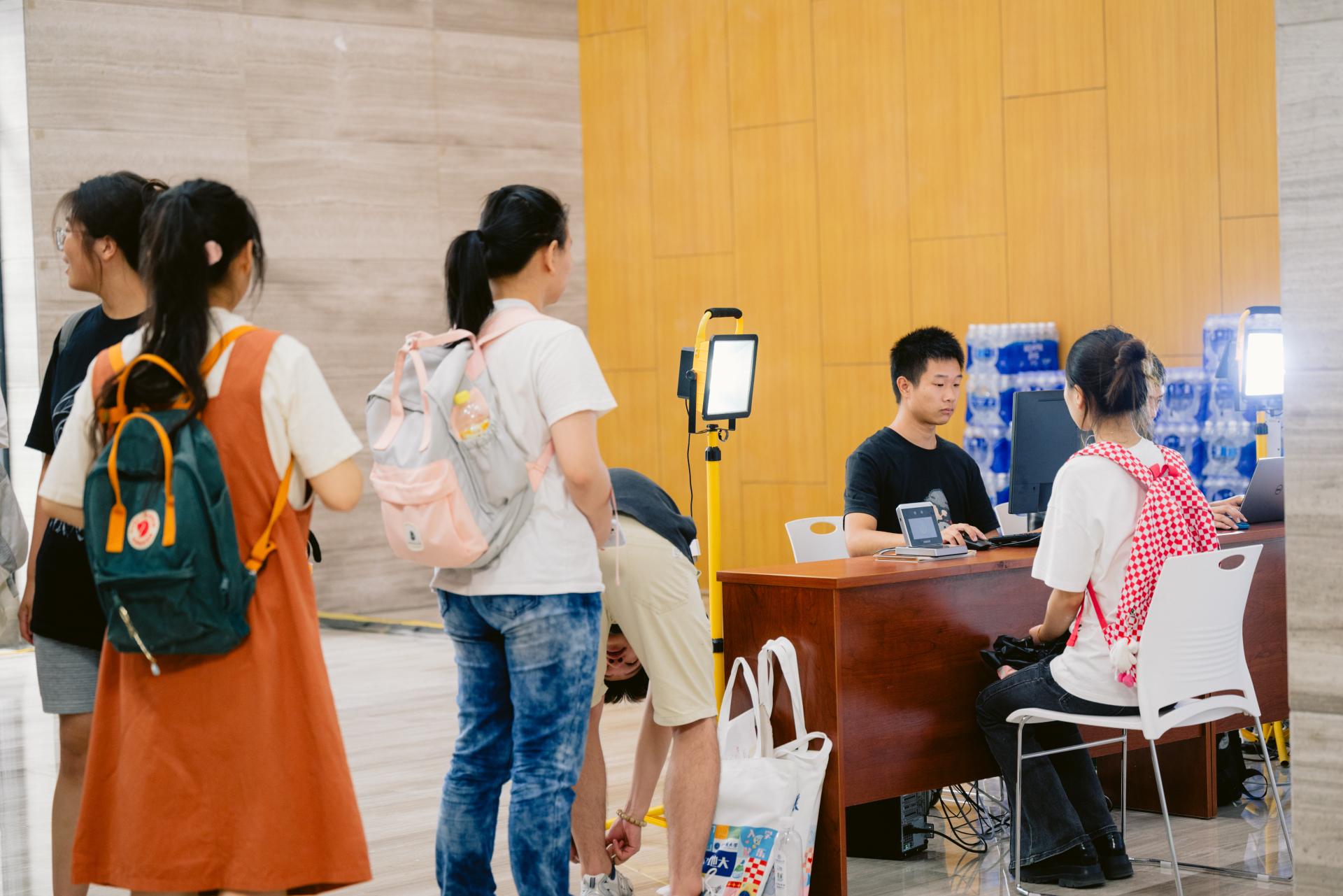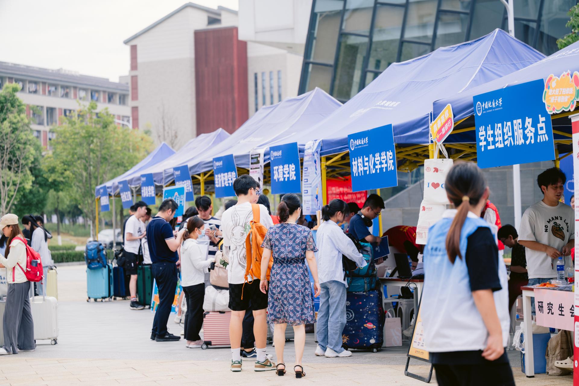专车接送,到站指引。新生们在迎新点递交资料、录入信息、办理入住,顺利完成各项报到手续。