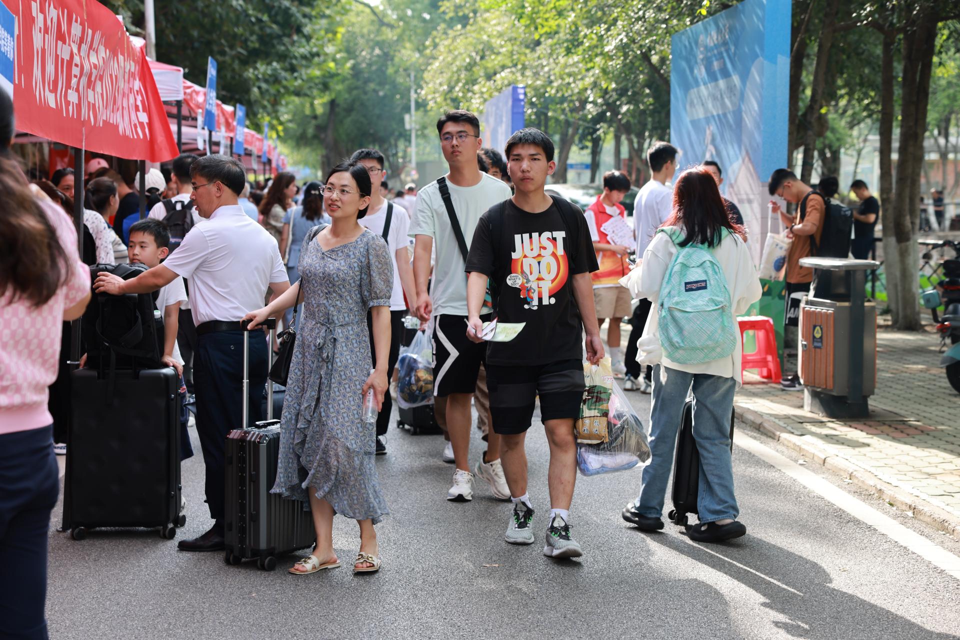 校园人头攒动,火红的横幅,热情的师生,一切都在欢迎新同学的到来。