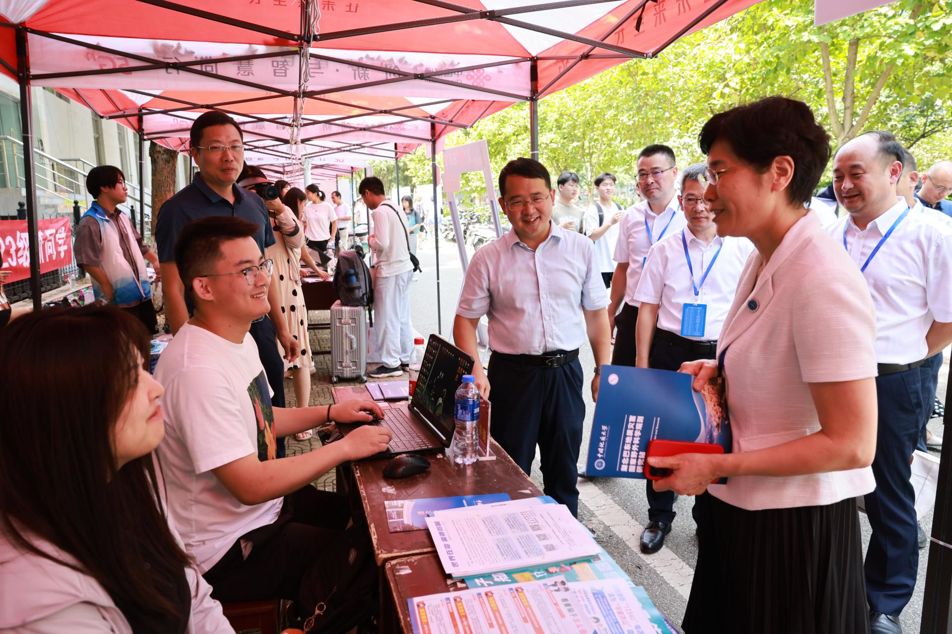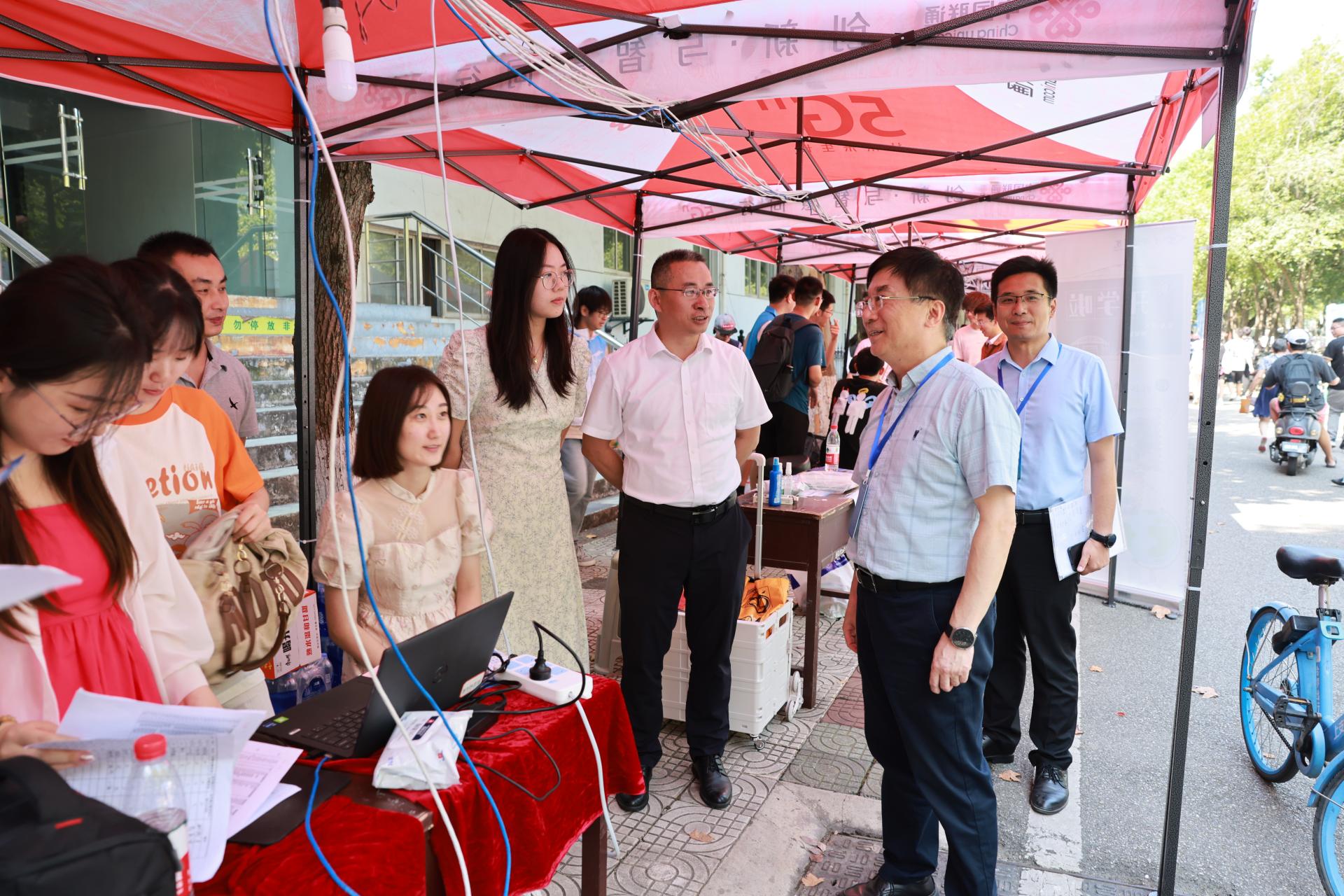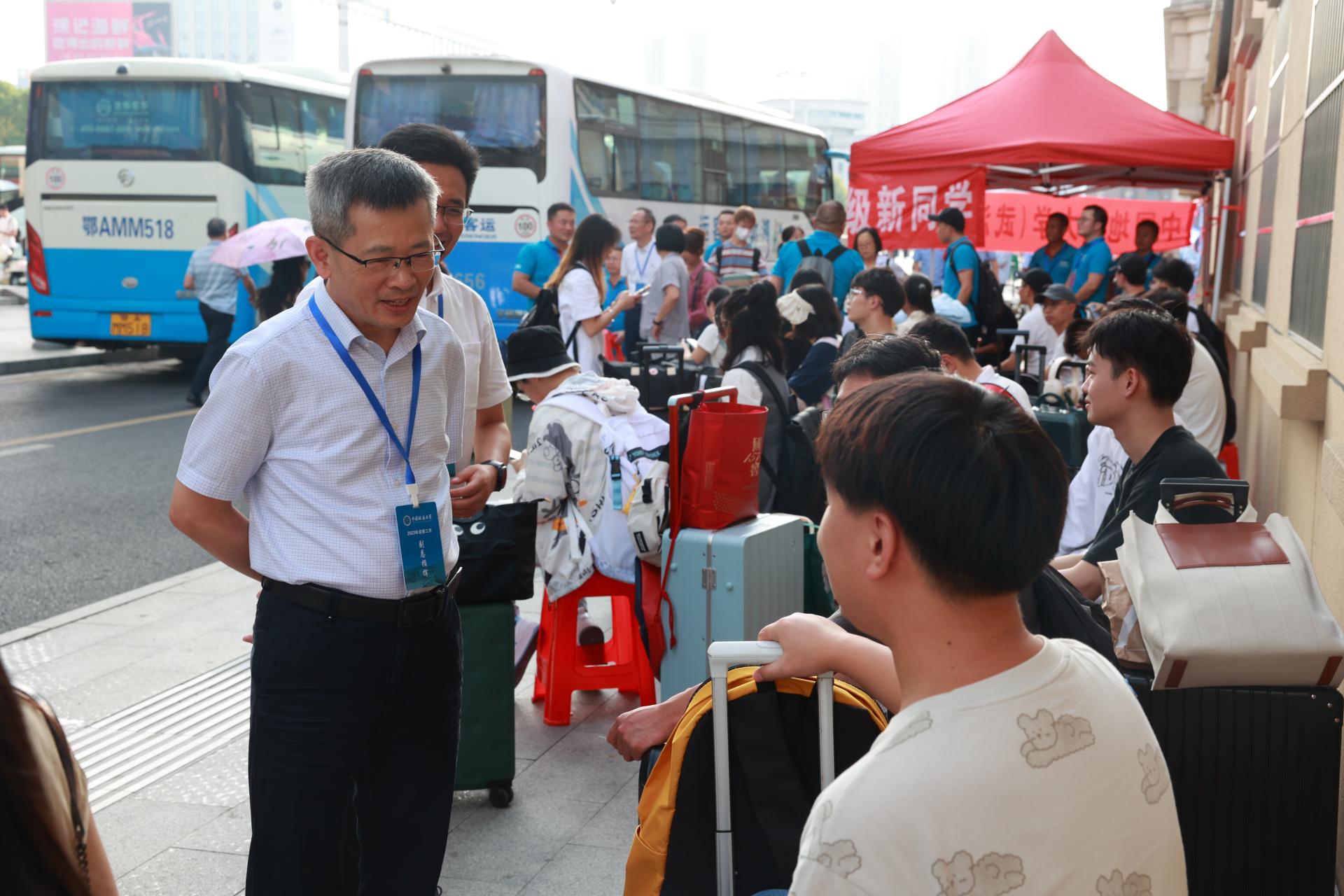 9月5日上午,校领导黄晓玫、王焰新、王林清、刘杰、李建威来到迎新现场慰问迎新工作人员,了解迎新工作情况,看望正在报到的新生,与学生及家长、迎新工作人员亲切交流,送上学校的关怀与慰问。