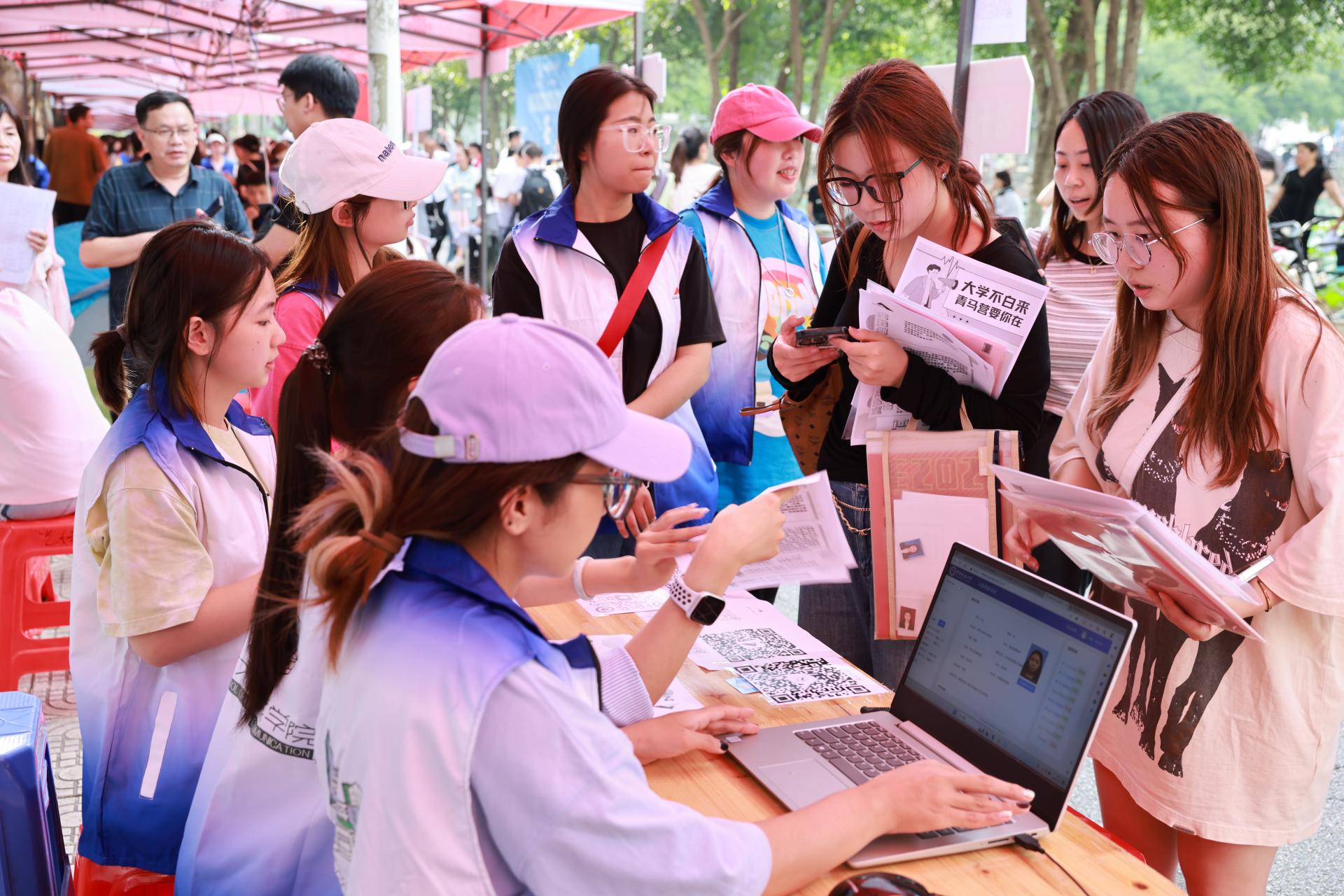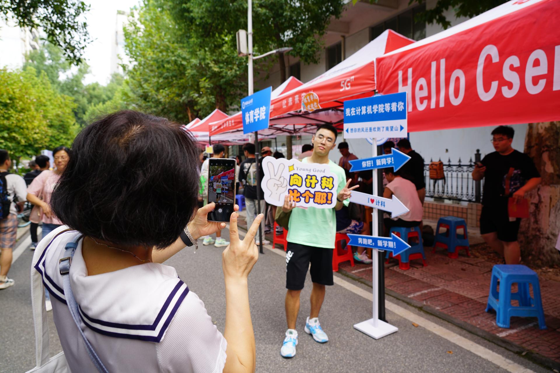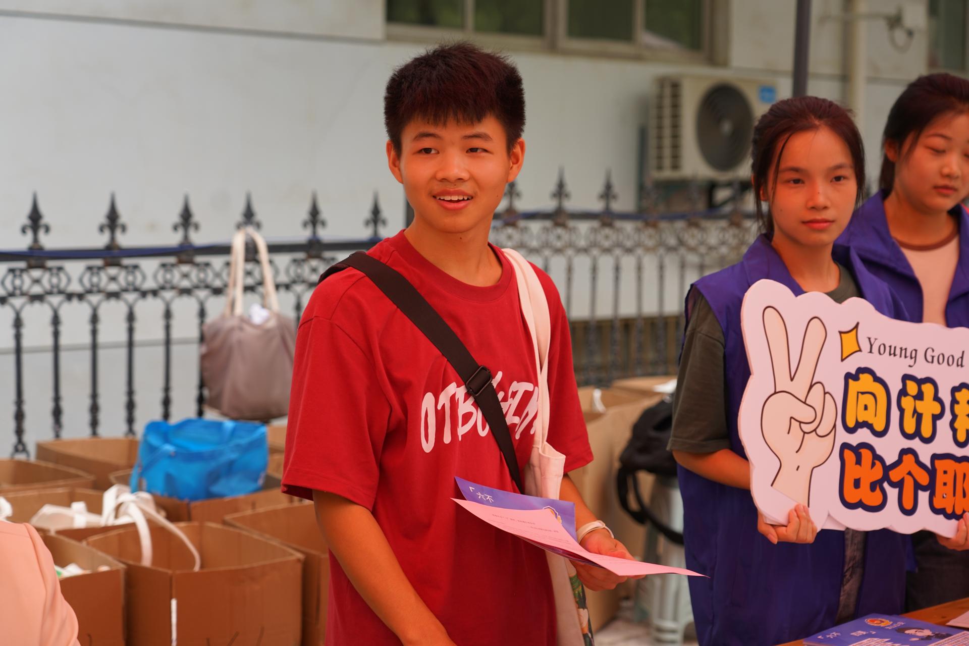 来自青铜之都——湖北省大冶市的曹树博,是计算机学院2023级新生。对计算机行业十分感兴趣的他,9月4日上午便成为第一个报到的新生。报到结束后,他留在迎新摊位,帮助学长学姐们分发资料,当起了迎新志愿者,一直忙到下午5点。他说:“助人为乐,我只是做了一些力所能及的事情。大学真的是一个多元的大舞台,很期待今后丰富多彩的生活。”