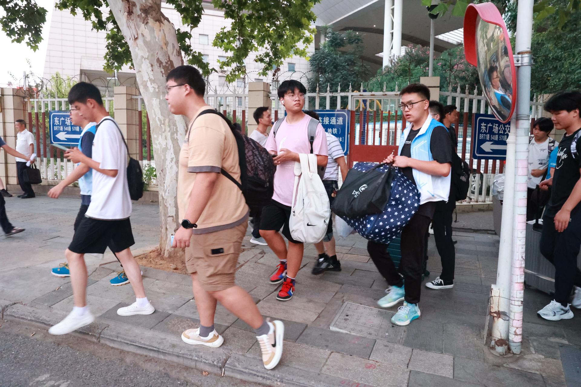 材料与化学学院2022级本科生徐海根、王佳胜、王程禹从未来城校区来做迎新志愿服务,每来一趟大巴他们都热情上前吆喝,接到学院新生引导到迎新点报到。他们说,迎接新生感觉很好,在火热的迎新氛围下,一点都不觉得疲惫。
