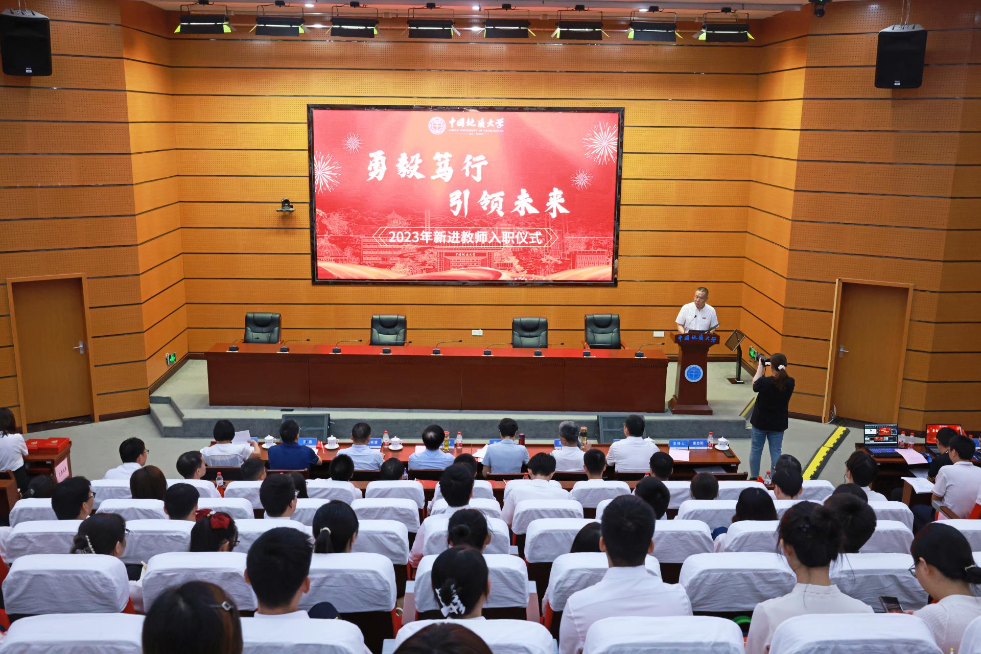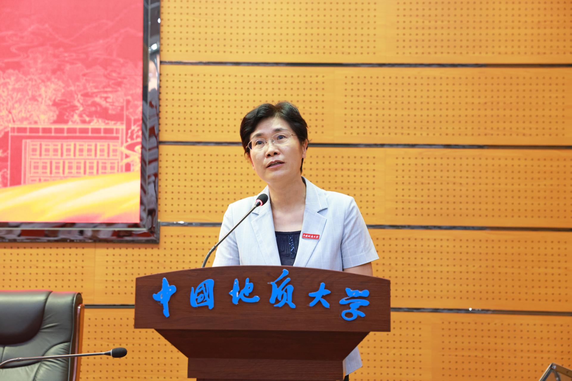校党委书记黄晓玫作《开拓创新担使命 砥砺奋进启新程》的主题讲话。她表示,今年7月,学校召开了第十三次党代会,进一步明确了未来五年的战略部署,学校将坚持“更高水平开放、更深层次改革、更高质量创新”,加快建设地球科学领域国际知名研究型大学。她希望全体新进教师要厚植爱党爱国情怀,争做强国征程上的“奋斗者”,胸怀“国之大者”,用党的创新理论武装头脑,坚定对党的真挚信赖、对国家的赤诚热爱,在成就国家富强、民族复兴的伟业中实现自我的人生价值;要坚守立德树人初心,争做培育时代新人的“引路人”,改进教育观念,钻研教学规律,提升教学能力,自觉涵养高尚师德,带头弘扬社会主义道德和中华传统美德,以自己的模范行为影响和带动学生,努力培养更多“品德高尚、基础厚实、专业精深、知行合一”的新时代地大学子;要坚定追求卓越志向,争做攻坚克难的“攀登者”,主动对接国家重大战略,以解决行业、领域中的难点问题作为科学研究的主攻方向,追踪前沿科技基础科学问题,以原始创新破解“卡脖子”技术难题,提升科研成果的社会价值和影响力,把论文写在祖国的大地上,努力成长为基础研究的主力军和重大科技突破的生力军。