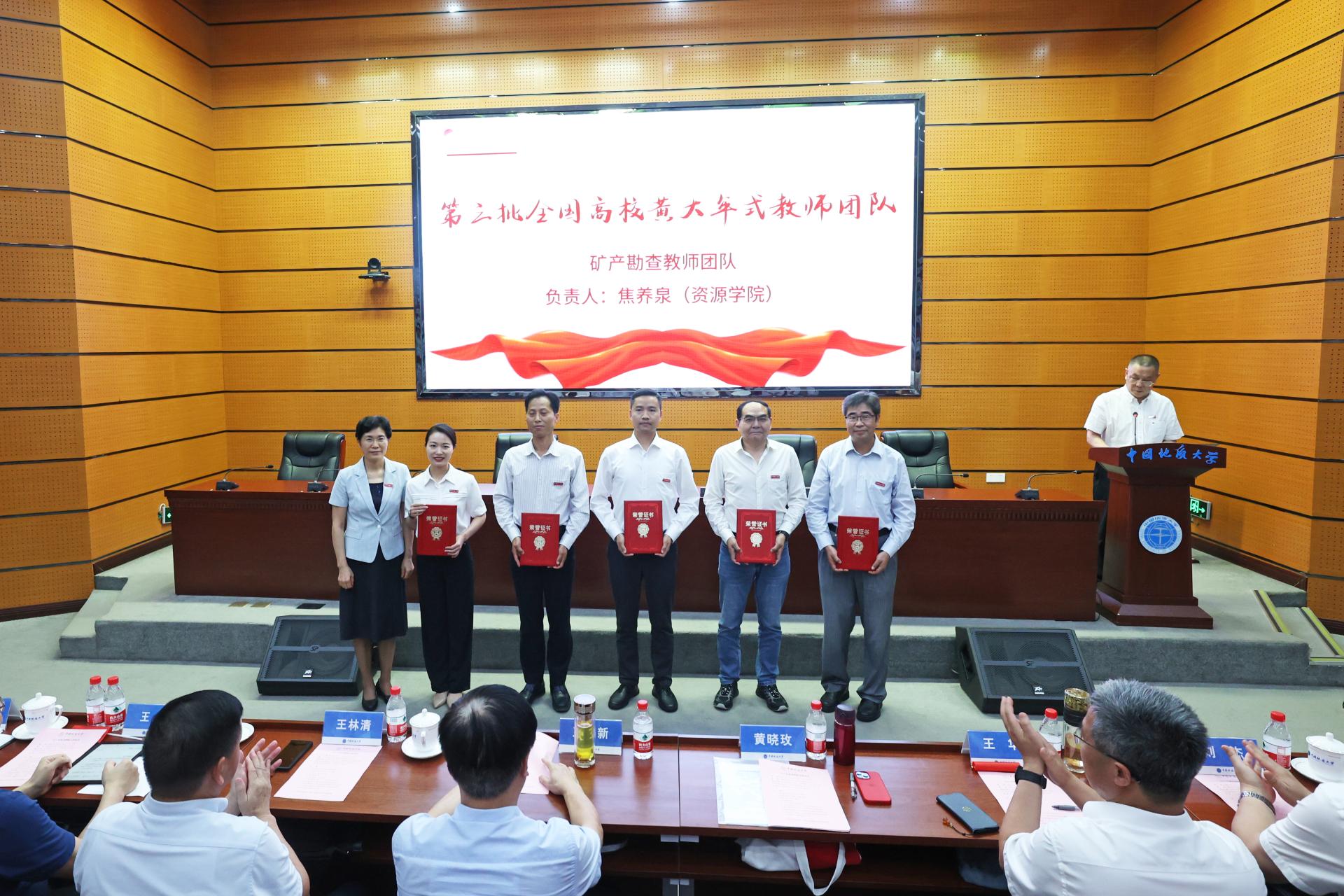 仪式上,表彰了学校一年来涌现出的优秀教师代表。黄晓玫为入选第三批“全国高校黄大年式教师团队”的矿产勘查教师团队成员代表颁发荣誉证书。