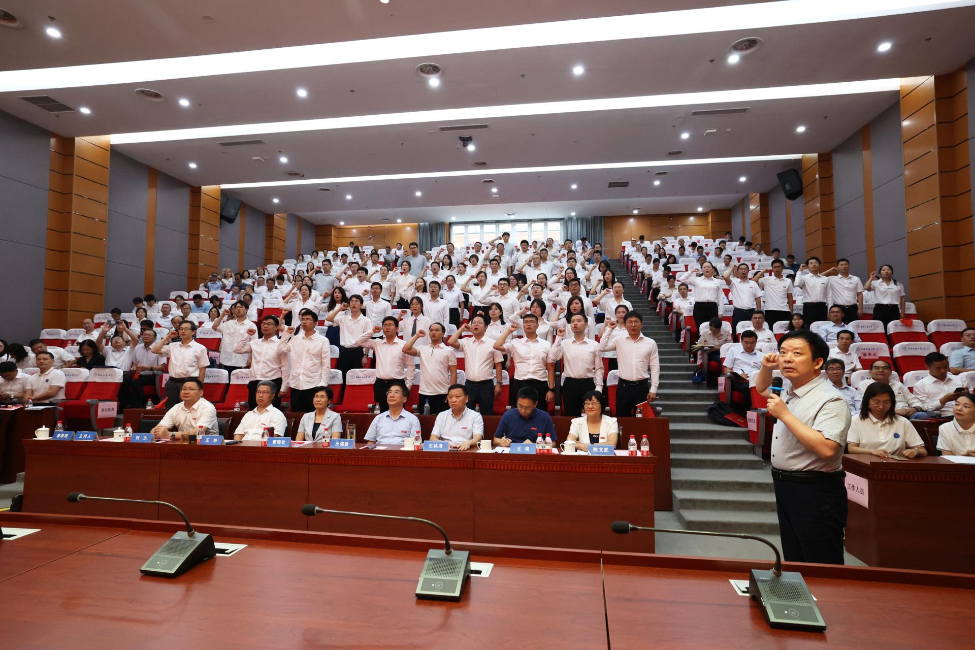 计算机学院教授戴光明领誓,全体新进教师庄严宣誓,表达对教育事业的坚定信念和对时代发展的使命担当。