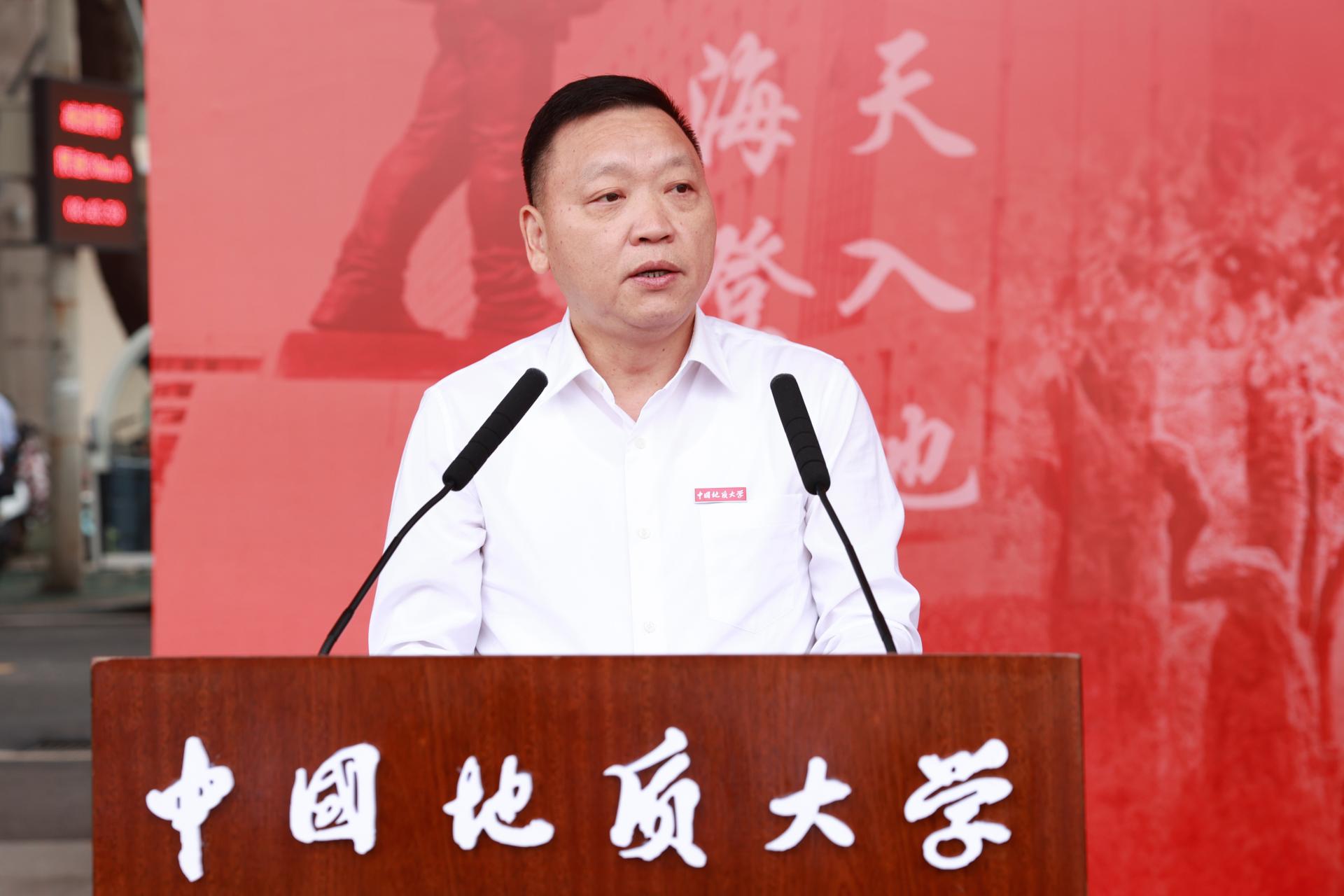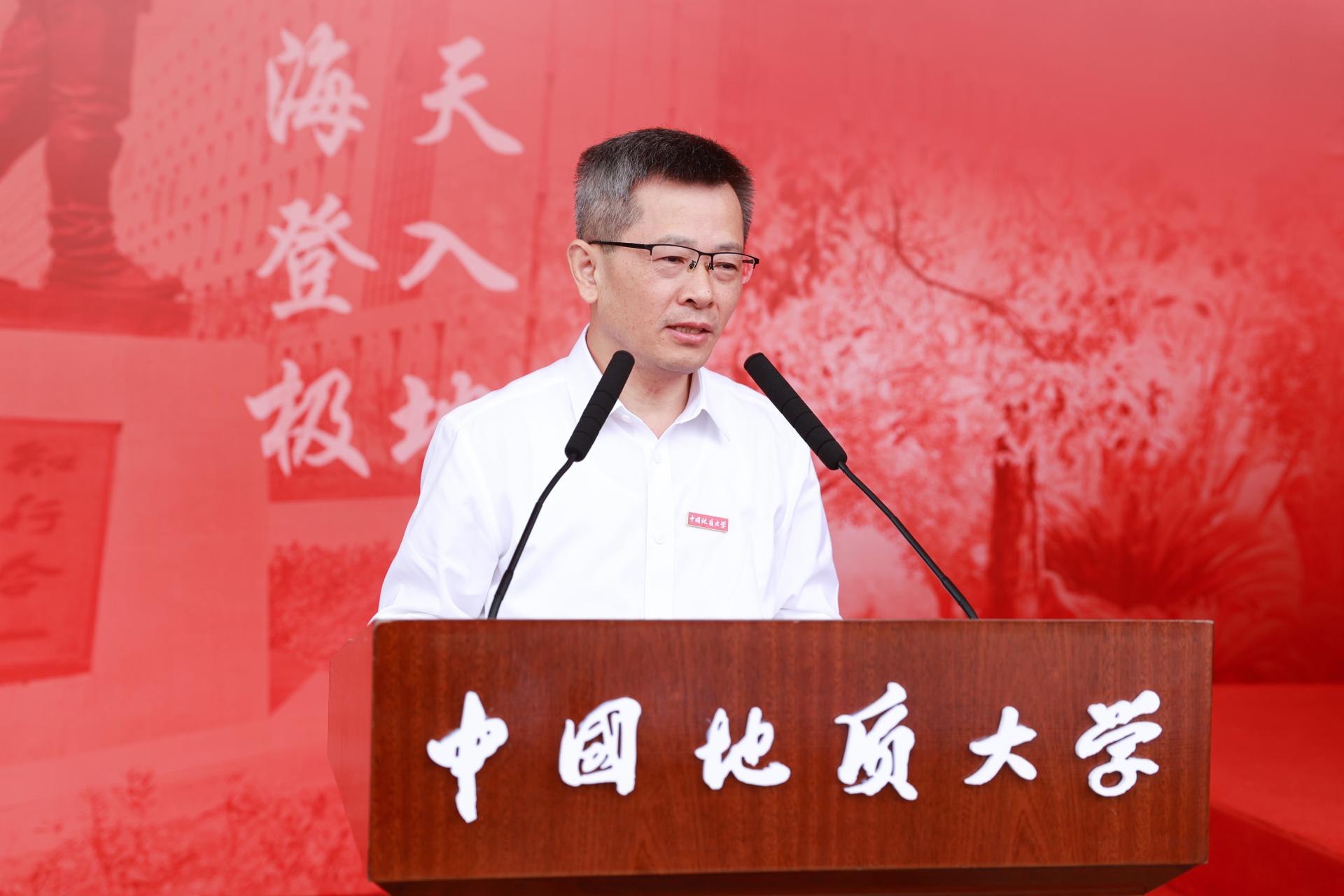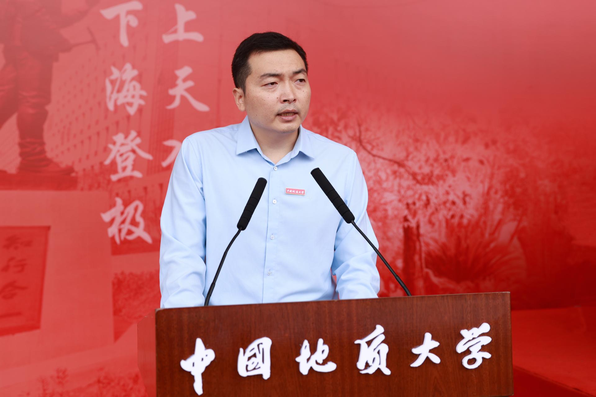 教师代表、国家杰出青年基金获得者、地球科学学院宋海军教授以自己在地大学习、工作、科研的经历和感悟,勉励同学们珍惜大学时光,做好规划,定好目标,培养兴趣,利用好学校提供的条件、资源,努力学习,做一名“有目标、有实践、有收获”的大学生。