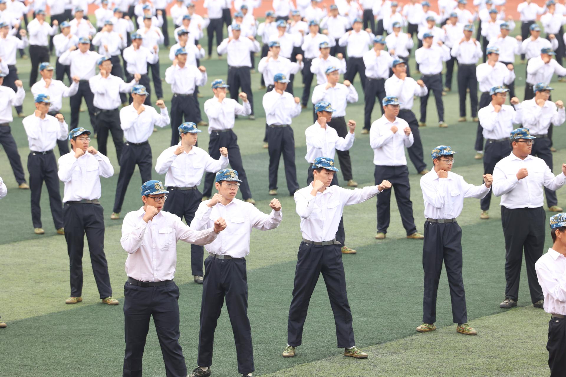 擒敌拳方阵由工程学院、机械与电子信息学院、经济管理学院800名男生组成,他们口号掷地有声,拳法铿锵有力,气势磅礴,一招一式,尽显青年本色。