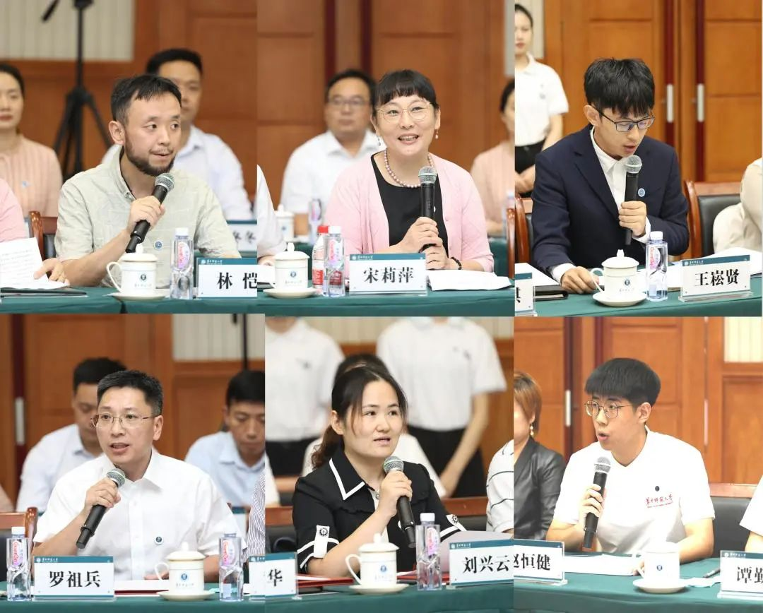 欧博地球物理与空间信息学院教授林恺、经济管理学院副教授宋莉萍,工程学院2023级博士研究生王崧贤,华中师范大学教育学院教授罗祖兵、心理学院教师刘兴云,教育学院2020级本科生赵恒健等师生代表围绕两校深化战略合作、促进共同发展交流发言。大家表示,立足新时代,面对新工科、新文科和推进教育数字化战略的挑战和机遇,两校在服务国家、区域重大战略需求、解决产业关键共性技术和重大关键问题上,有着共同的目标、良好的合作基础和广阔的合作前景。双方携手,在保持各自优势的基础上,促进两校在人才培养、科学研究、管理体制改革等方面的互补,是促进文理相通、打造合作方式的创新之举,有助于两校在推动“双一流”建设进程中互利共赢。