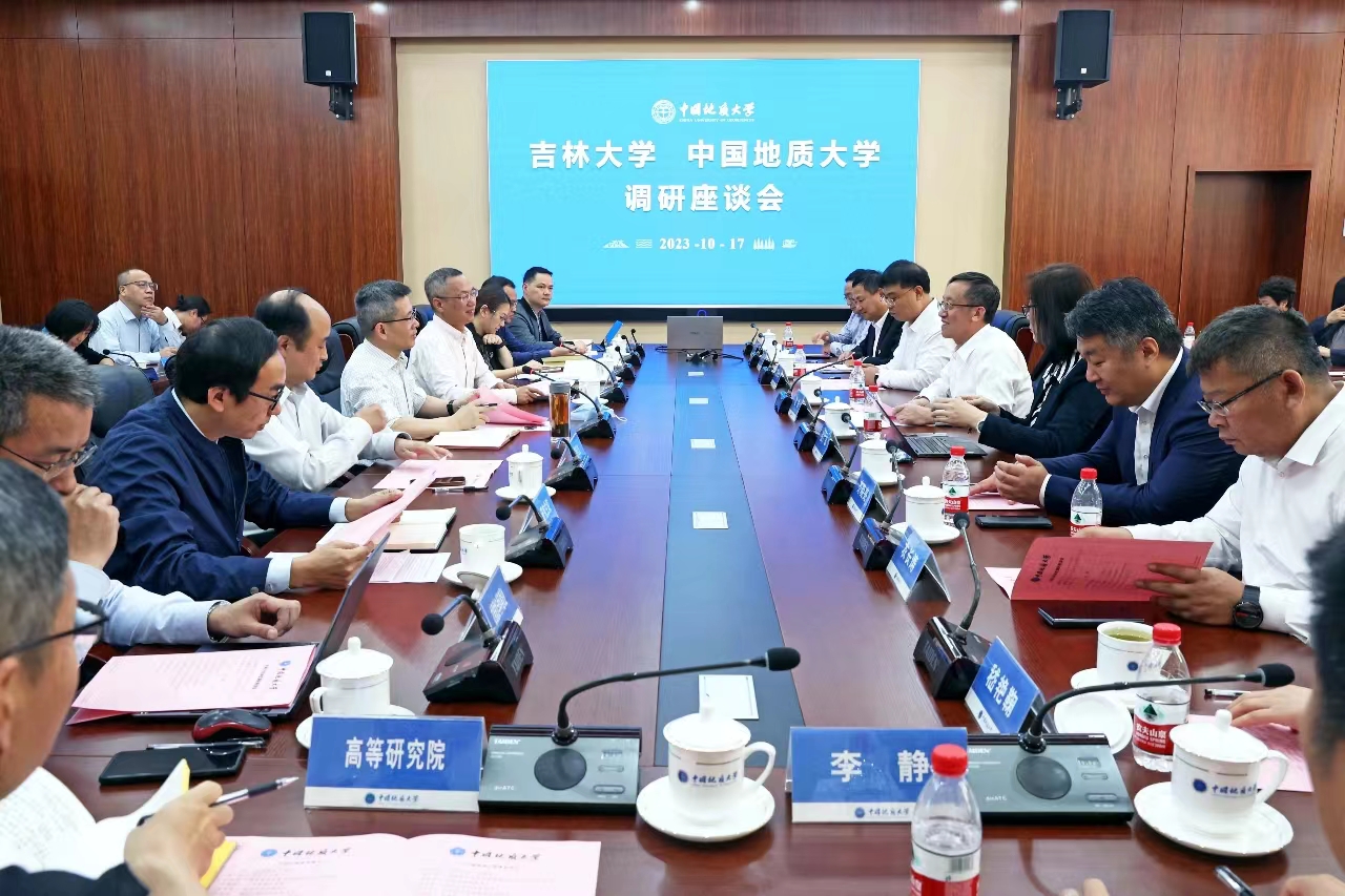 边铁表示,吉林大学与地大在人才培养、学术交流、科研技术攻关等方面有着密切联系。他希望双方在已有良好合作基础之上,能够加强在地学拔尖创新人才培养、工程硕博士培养等重点领域的交流共建,共同提升育人育才的成效;加强信息互通和经验分享,更好地凝练重大科学问题和学科发展方向,合力打造国家级科研平台;加强人才引进和合作交流,共谋内涵式高质量发展。