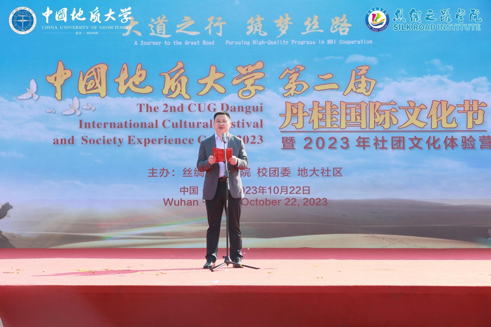 一场精彩的《丝路·梦》国际民族服装秀拉开了活动的序幕。副校长刘杰在致辞中表示,今年是共建“一带一路”倡议提出的十周年,欧博作为高等地质教育领域的国家队和排头兵,积极主动服务“一带一路”建设,近年来国际教育交流合作不断深化。“一花独放不是春,百花齐放春满园”,丹桂国际文化节搭载了世界文化交流碰撞、中外学生趋同融合的舞台,展现了国际教育合作在“一带一路”十周年来取得的丰硕成就。他向与会来宾们表示热烈欢迎,向精心筹备本次活动的老师和同学们表示感谢,并希望青年学子在感受“天下大同,美美与共”的同时,不忘弘扬丝路精神,当好友谊使者和合作桥梁,为构建人类命运共同体贡献自己的青春力量。