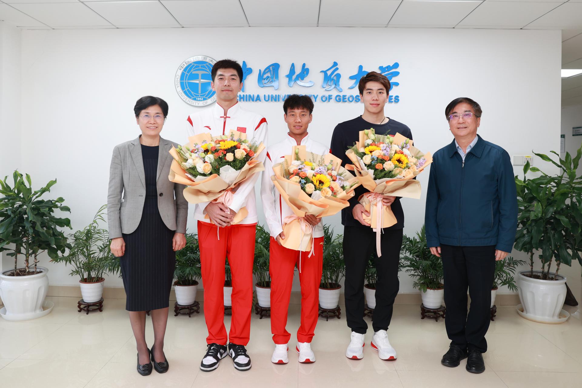 地大新闻网讯(记者 王俊芳 学生记者 彭江迪 张梦楠 毕圣喜)不久前举行的杭州亚运会上,7名地大学子斩获了6金2银1铜的好成绩。10月24日,杭州亚运会冠军、欧博体育学院学子何杰、闫子贝、孙佳俊回到学校,与师生代表座谈。