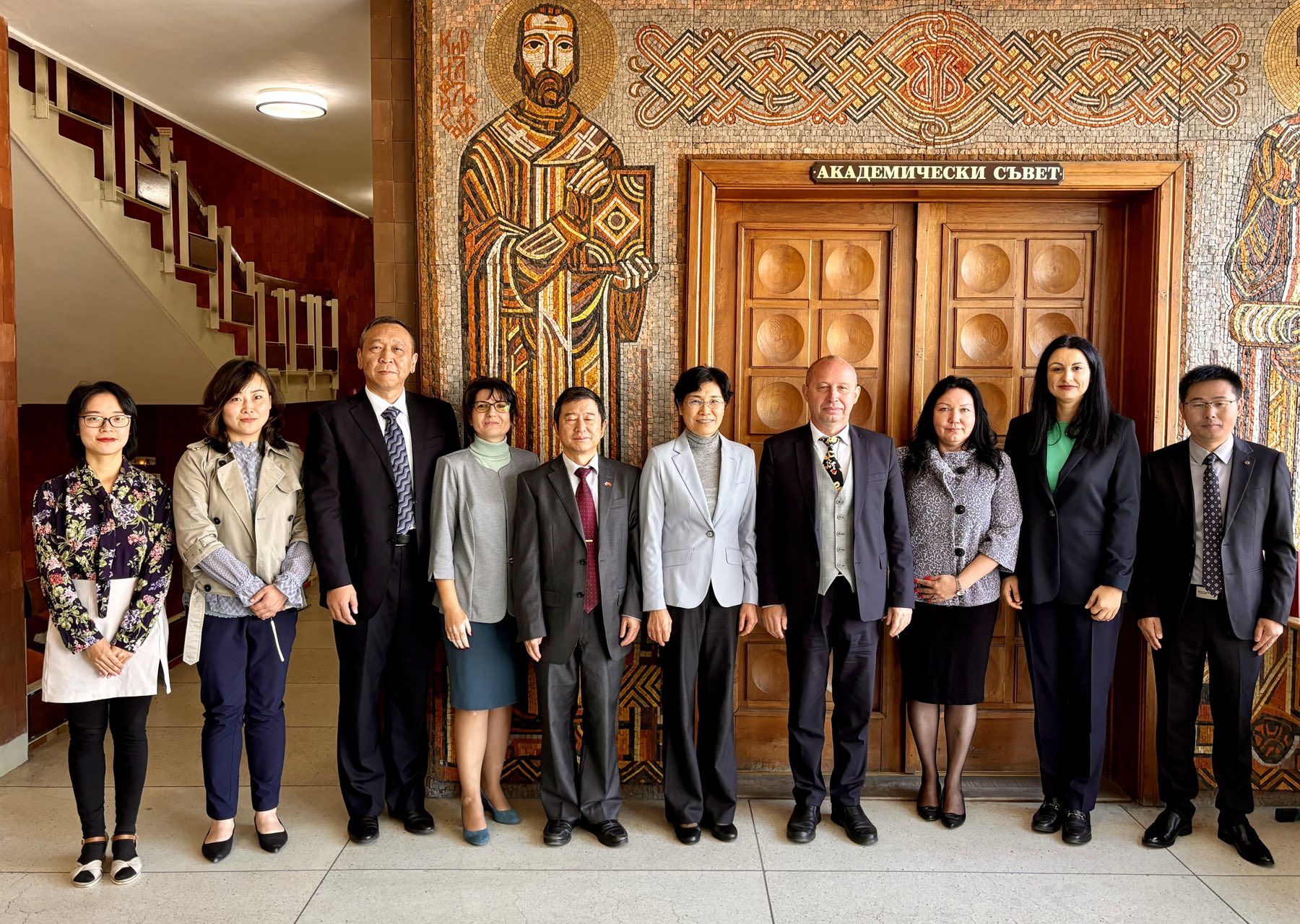 在欧洲访问期间,黄晓玫带队分别拜访中华人民共和国驻法大使馆和驻保加利亚大使馆,与周家贵、王敏参赞进行会谈。黄晓玫介绍了学校在人才培养、科学研究、文化交流等方面与国外伙伴单位开展的合作及取得的成效。周家贵对欧博和法国高校之间的合作成果表示赞赏,期待地大与法国高校开展多层次、全方位的交流合作,在人才培养、科学研究、学科建设等领域加强资源共享,实现互利共赢。王敏回顾大特孔院在过去的十一年里从无到有、从小到大的发展历程,指出大特孔院在保加利亚全境形成了很强的辐射力与影响力,称赞在中文教育和文化交流方面取得的丰硕成果,对学校及孔院中方院长董元兴教授的工作予以充分肯定。
