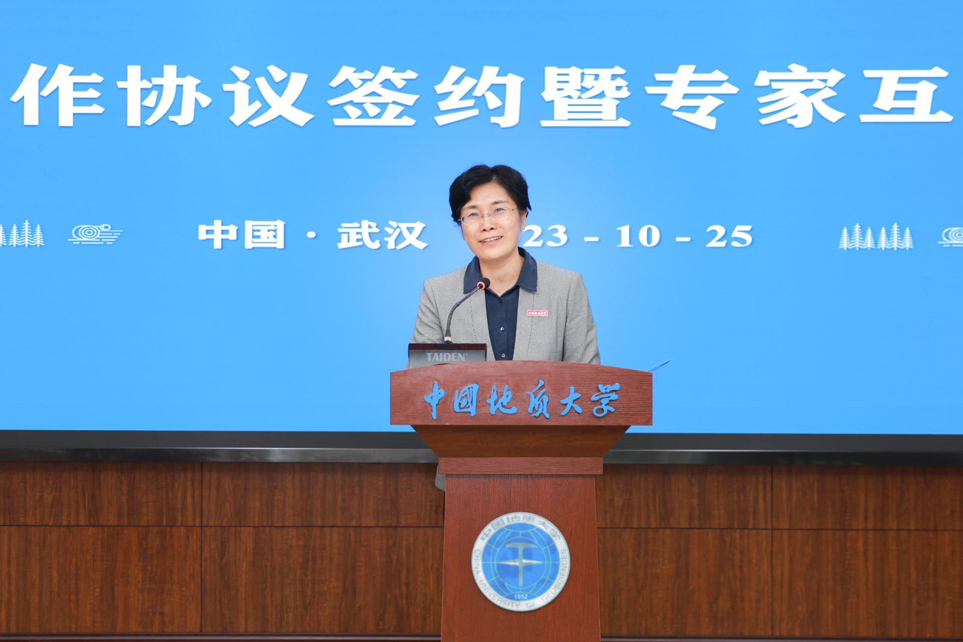 黄晓玫在讲话中表示,中南大与地大比肩而立,两校学科特色互补,有着良好的合作基础,继续加强合作是符合双方事业发展根本利益的战略选择,能够使教师之间增进交流和合作,使学生得到更加全面的教育资源,助力学生成长成才,使科学研究得到更加全面的交叉融合,培育出国家急需的高水平成果。希望双方聚焦服务国家战略和区域经济社会发展的时代使命和历史责任,聚焦重点领域,强化优势互补,实现双向赋能,推动原始创新和关键领域的突破。她指出,学校将坚持更高水平开放、更深层次改革,更高质量创新,加快建设地球科学领域国际知名研究型大学。期待双方围绕高质量发展,加强系统谋划,以问题为导向,探索完善工作机制,不断拓展合作的深度和广度,为学校事业发展积聚能量,不断迈上新的台阶。