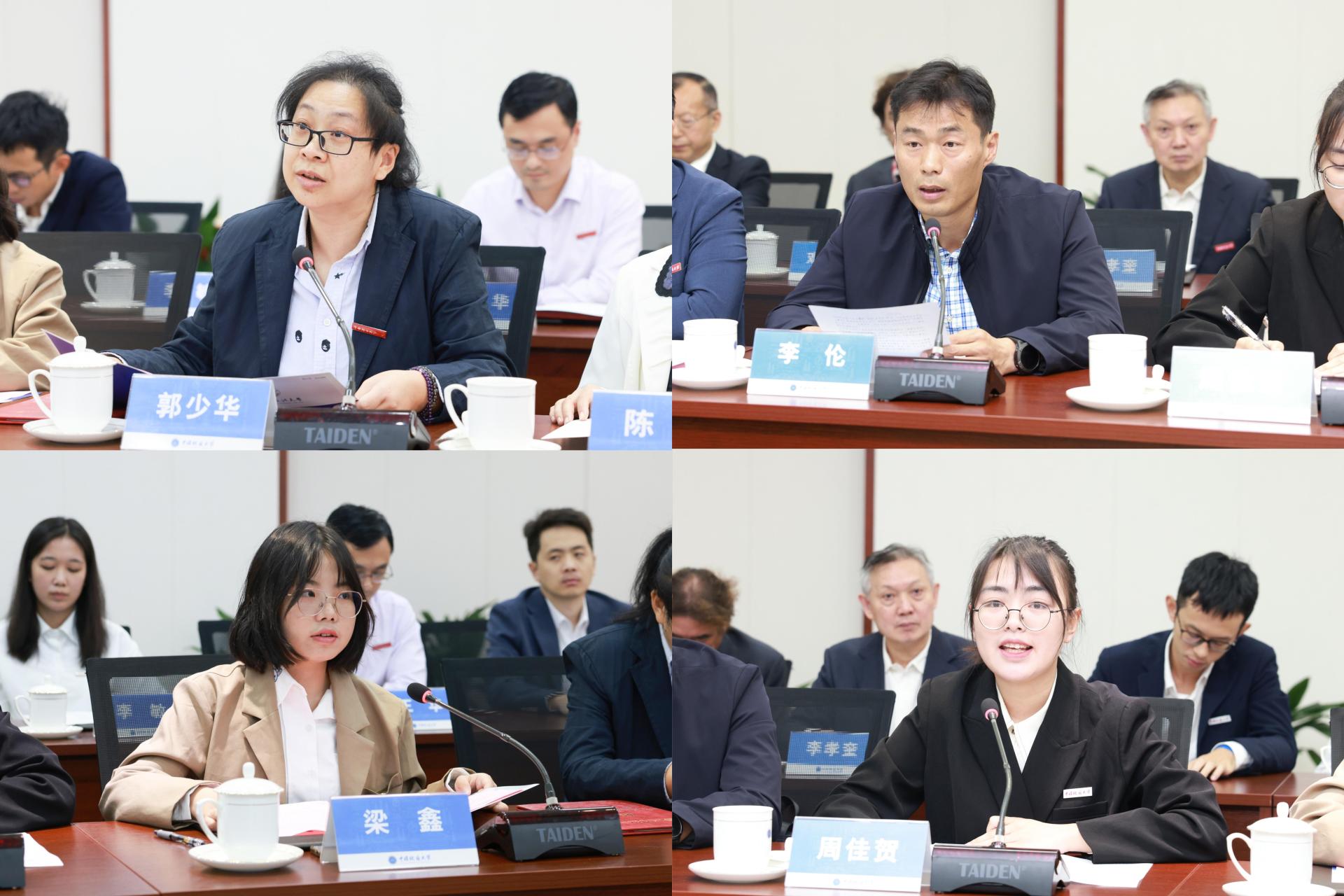 中南财经政法大学教师郭少华、国家治理学院研究生梁鑫,欧博体育学院副院长李伦、公共管理学院本科生周佳贺等师生代表围绕两校深化战略合作、促进共同发展交流发言。大家表示,两校合作,能够发挥优势,促进资源共享,为提高两校人才培养质量,适应时代发展需求,服务国家战略、区域发展奠定基础,有助于在两校“双一流”建设进程中互利共赢,为加快建设教育强国、全面建设社会主义现代化国家作出新的更大贡献。
