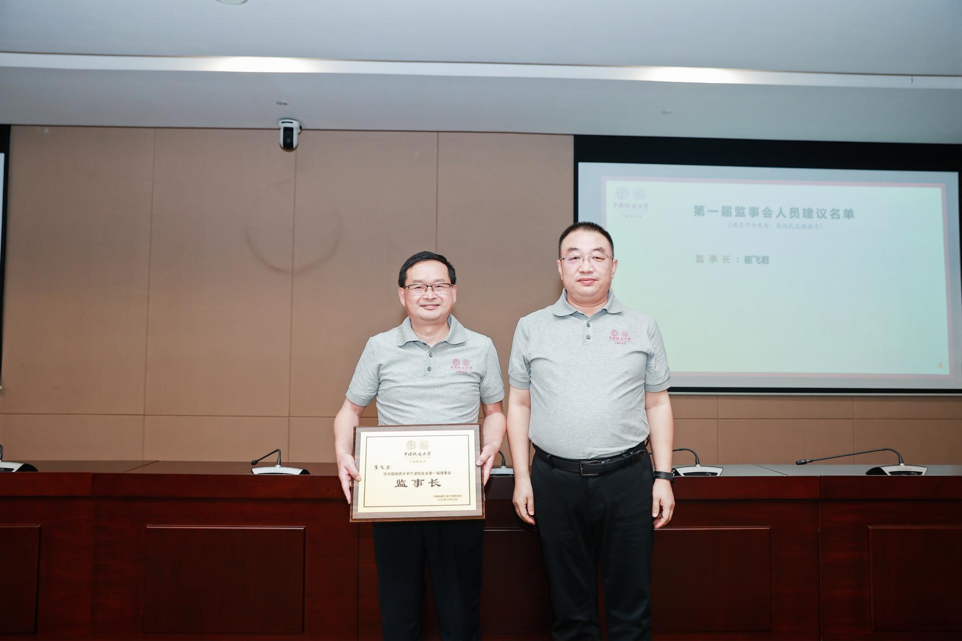澳新校友会会长张基得、浙江校友会会长丁晓冬为执行会长、副会长、第一届理事会成员授牌。