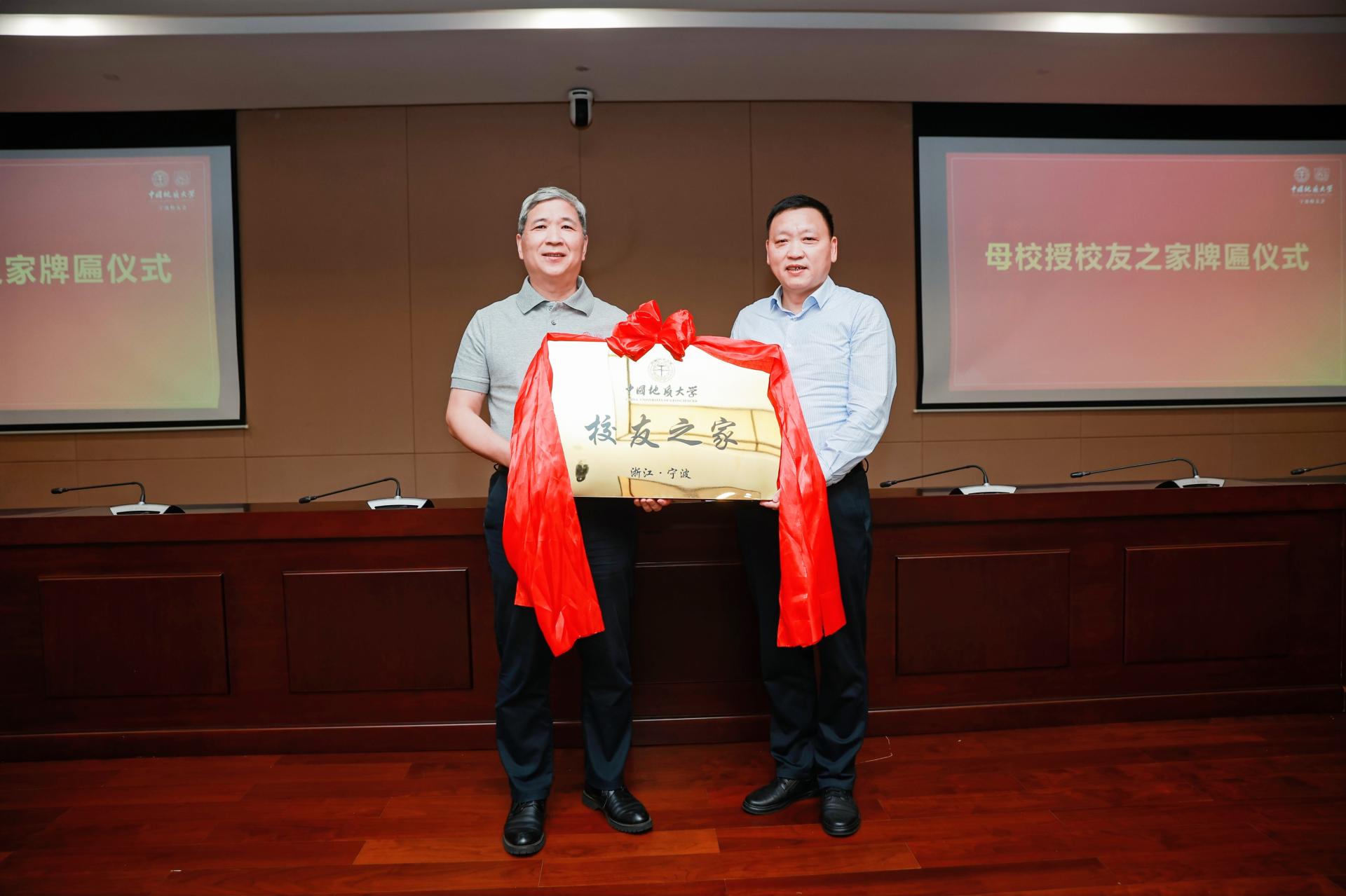 王林清为菲律宾欧博游戏官网宁波校友会授“校友之家”牌匾。