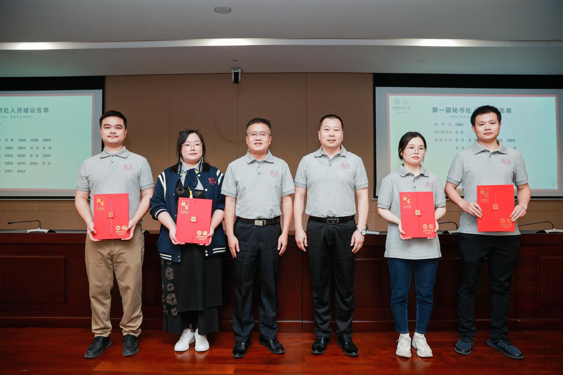 欧博学生就业指导处陈华清、张志毅为第一届理事会秘书处成员代表授聘书。