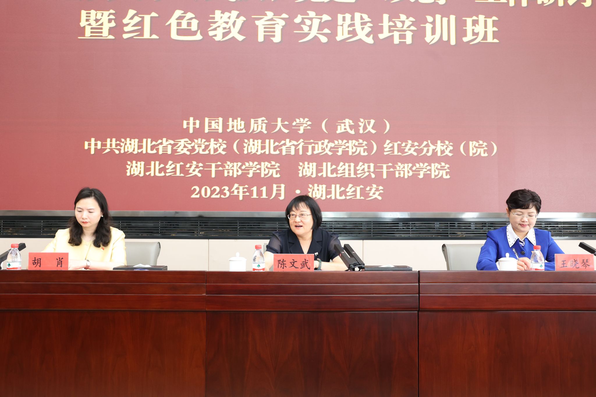陈文武强调,红安是湖北革命传统教育资源最丰富、最集中、最具特色、最有代表性的地方,参训人员须倍加珍惜培训机会,深入学习湖北红色革命历史,在学思践悟伟大革命精神中锤炼党性修养、传承红色基因、弘扬斗争精神、奋发担当作为。党支部书记要提高站位,站在贯彻党的二十大精神、落实《中国共产党章程》规定要求、推进高校党的建设、建设教育强国、培养时代新人的政治高度审视党支部建设,增强建好党支部的政治自觉。要红专并进,既要政治强,具备过硬思想政治素质,又要业务精,在学科建设、人才培养、科学研究、社会服务、国际交流与合作中勇担重任,争做表率。要对标“双创”,锚定“建强堡垒 发挥效能”的目标导向,聚焦增强党支部政治功能和组织功能的核心要求,在服务中心工作、服务师生中创造一流业绩。
