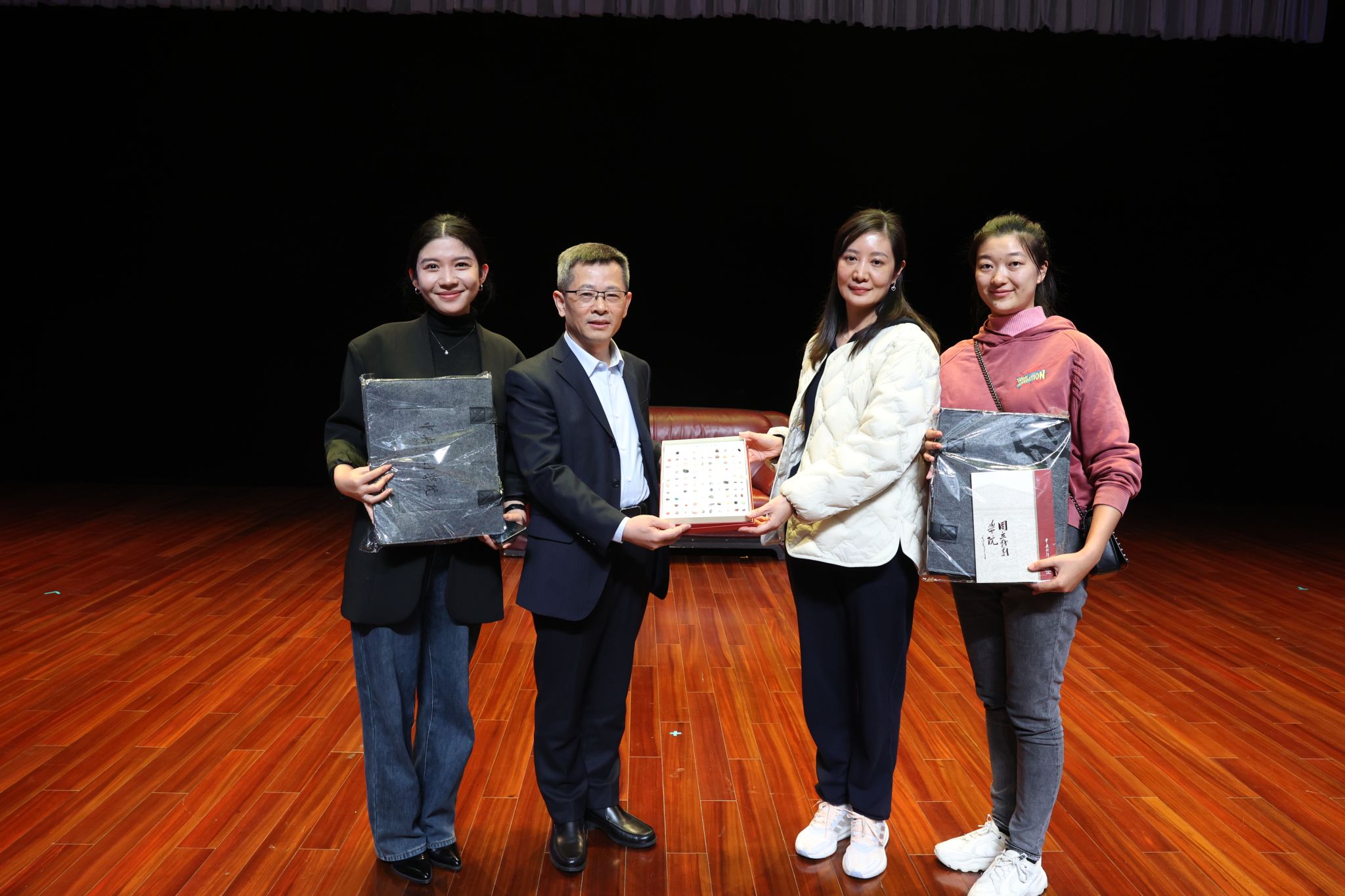 演出结束后,副校长李建威代表学校和中央戏剧学院互赠文创产品。