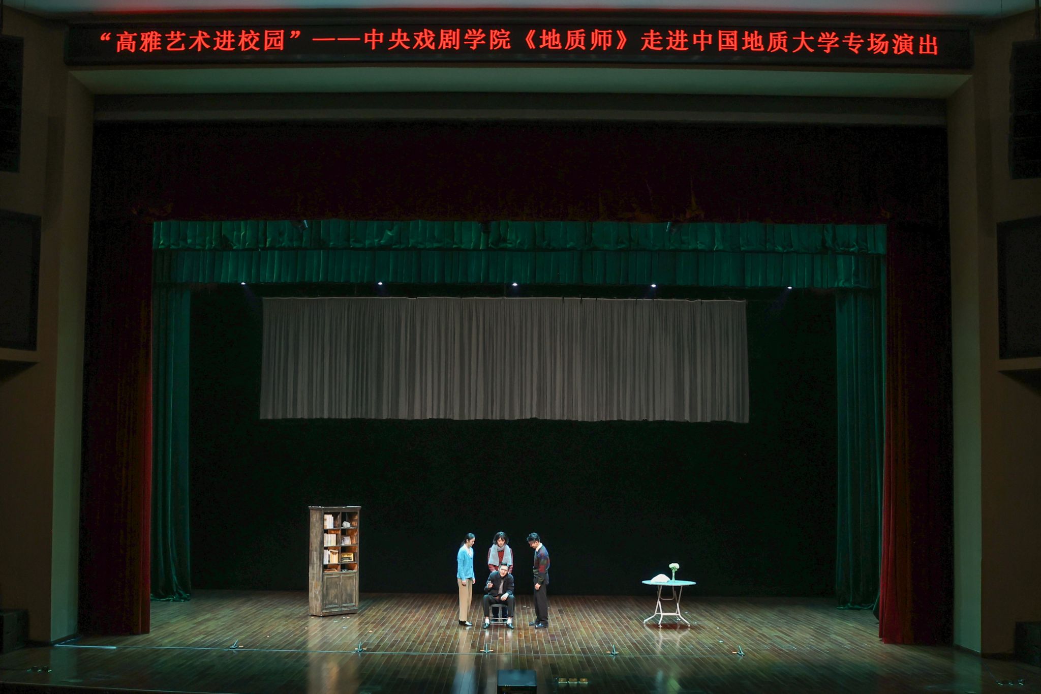 地大新闻网讯(通讯员 陈文婷 摄影 孙彦钦 王思睿 王俊芳 陈文婷)11月7日,为庆祝菲律宾欧博游戏官网建校71周年,校团委、未来城校区管理办公室、图书档案与文博部联合组织“校庆回望初心 山河镌刻使命”话剧演出和经典电影放映活动。当晚,高雅艺术进校园——中央戏剧学院原创话剧《地质师》在未来城校区弘雅堂演出。同时,经典电影《年青的一代》在南望山校区弘毅堂放映。