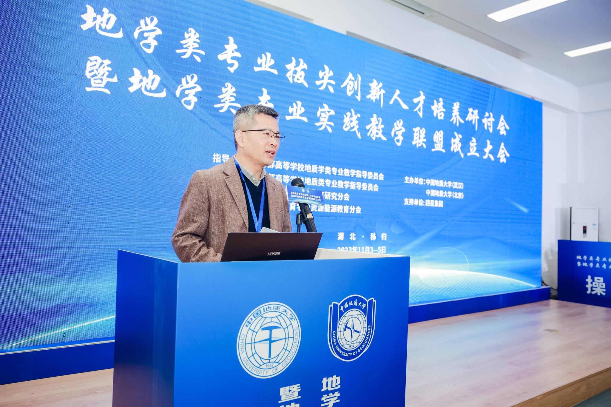 教育部高等学校地质学类专业教学指导委员会主任委员赖旭龙教授宣布地学类专业实践教学联盟正式成立。