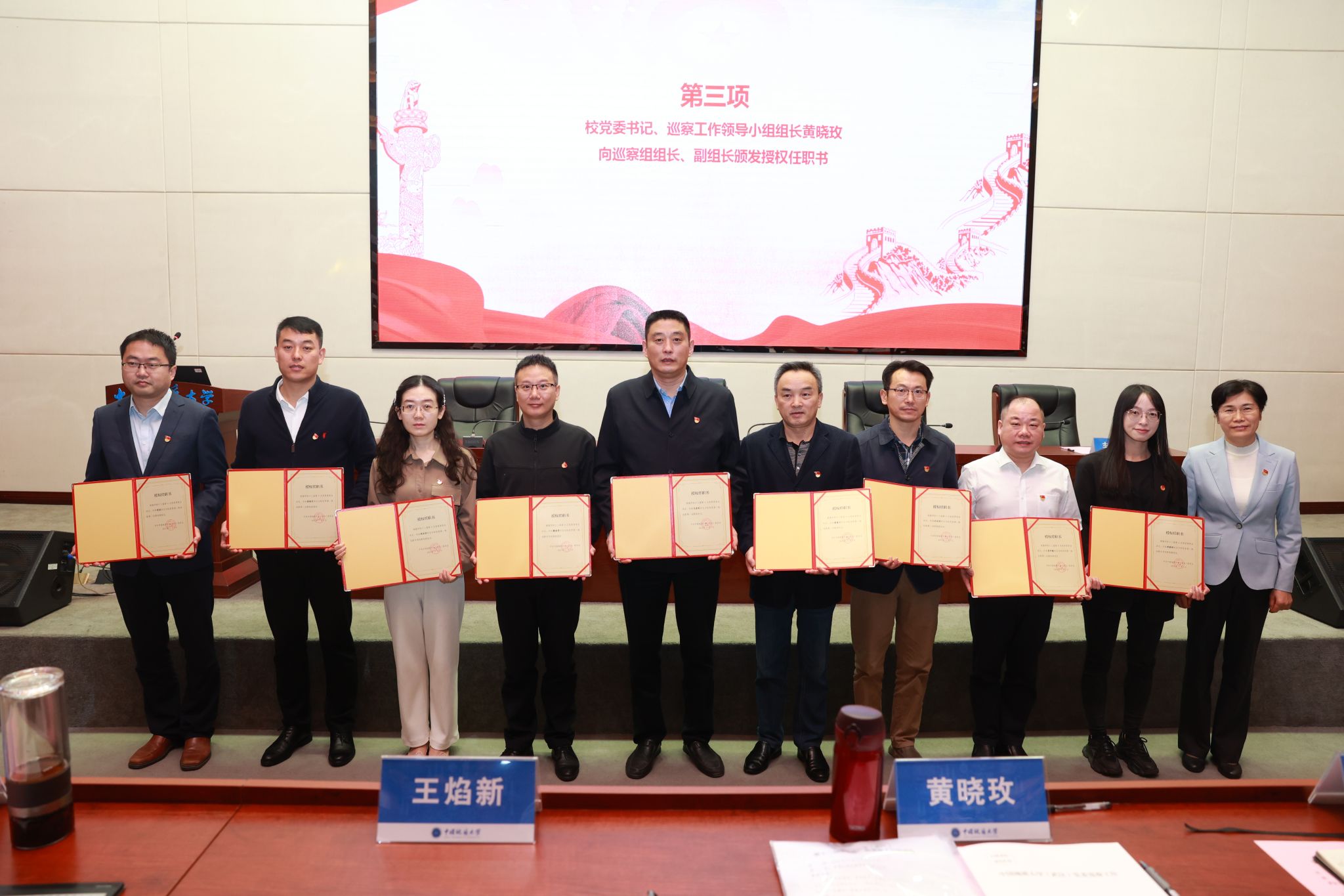 校党委书记、巡察工作领导小组组长黄晓玫向巡察组组长、副组长颁发授权任职书。
