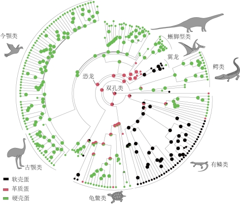 爬行类中蛋壳类型的演化图