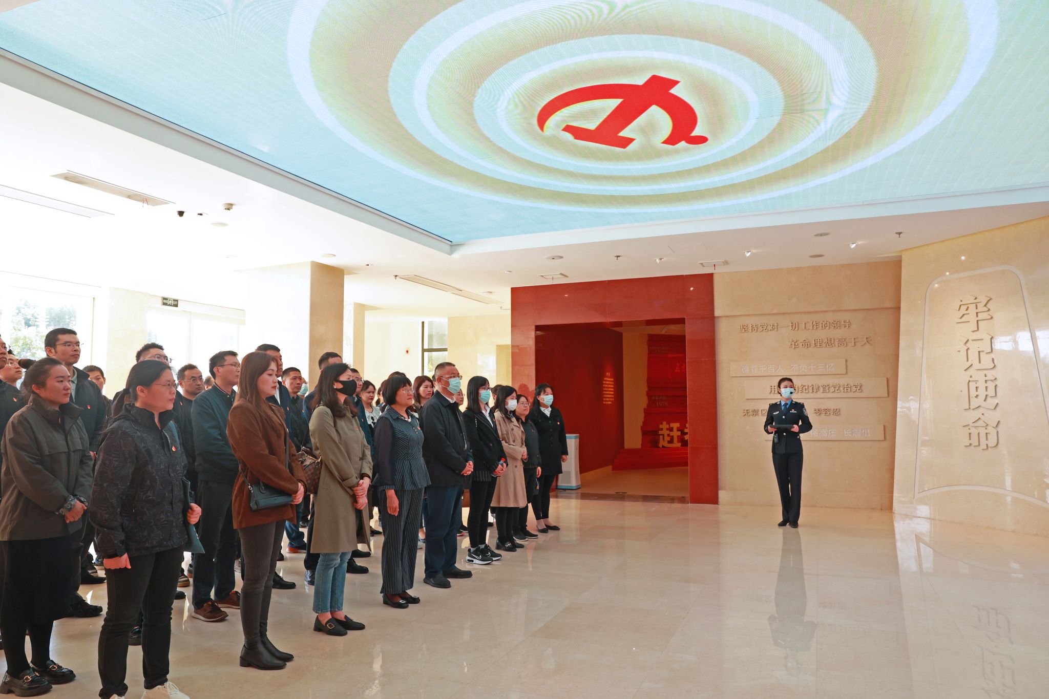 在讲解员的带领下,大家先后参观了“赶考之路”“廉政之规”“覆车之鉴”“湖北之为”等主题展厅,通过图文展示、专题短片、场景模拟、互动问答的方式,认真学习领悟习近平总书记关于党风廉政建设工作的重要论述和对湖北发展的殷殷嘱托,系统回顾中国共产党开展党风廉政建设和反腐败斗争的历史进程。