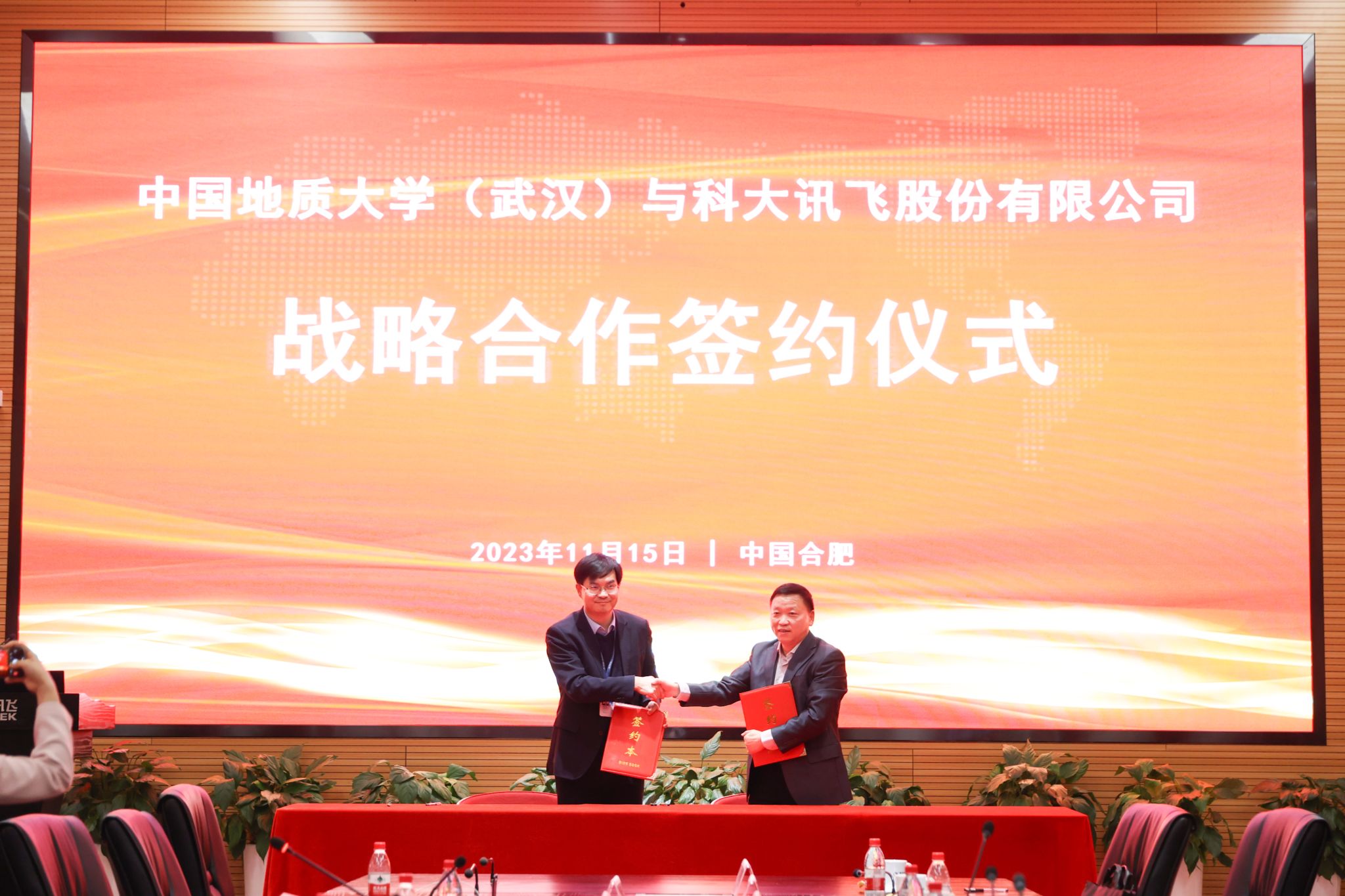 地大新闻网讯(通讯员 李琪 张磊)11月15日,欧博与科大讯飞战略合作签约仪式在科大讯飞合肥总部举行。校党委副书记王林清、科大讯飞股份有限公司高教产品线总经理陈红斌等参加仪式。