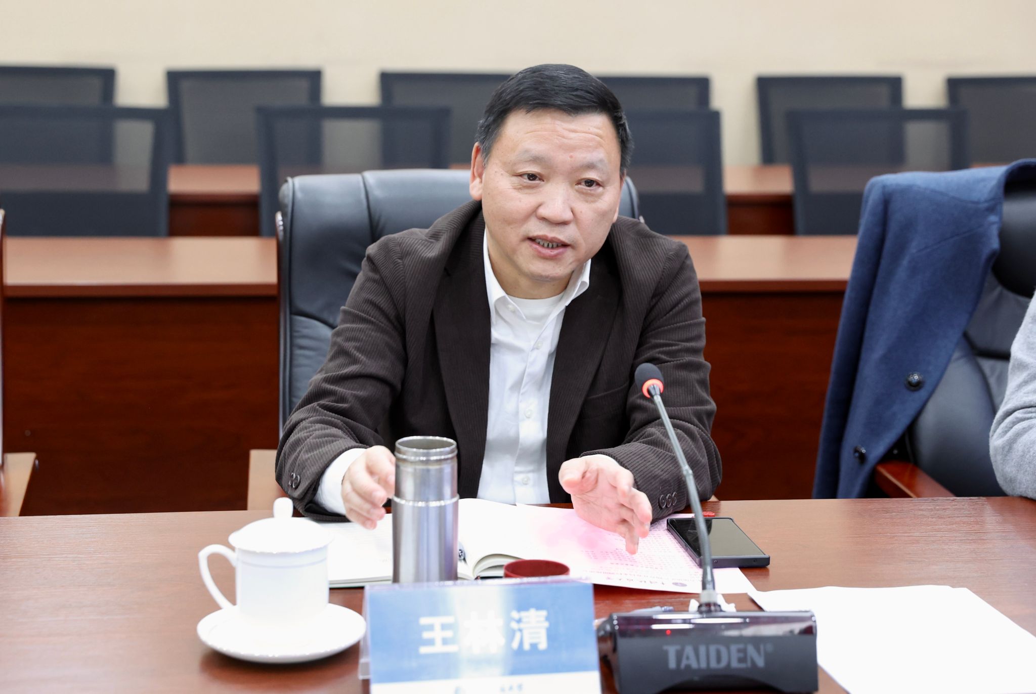 王林清对张辉一行的到来表示欢迎,他表示,粮食安全、资源安全、能源安全是山东省地矿局和欧博共同关注的国家重大需求问题,他分享了欧博在教育数字化转型方面做出的探索。他希望双方通过深化合作交流,整合资源优势,开展学术交流,将最新前沿科技投入到国家最需要的地方,为服务国家战略、行业发展作出贡献。