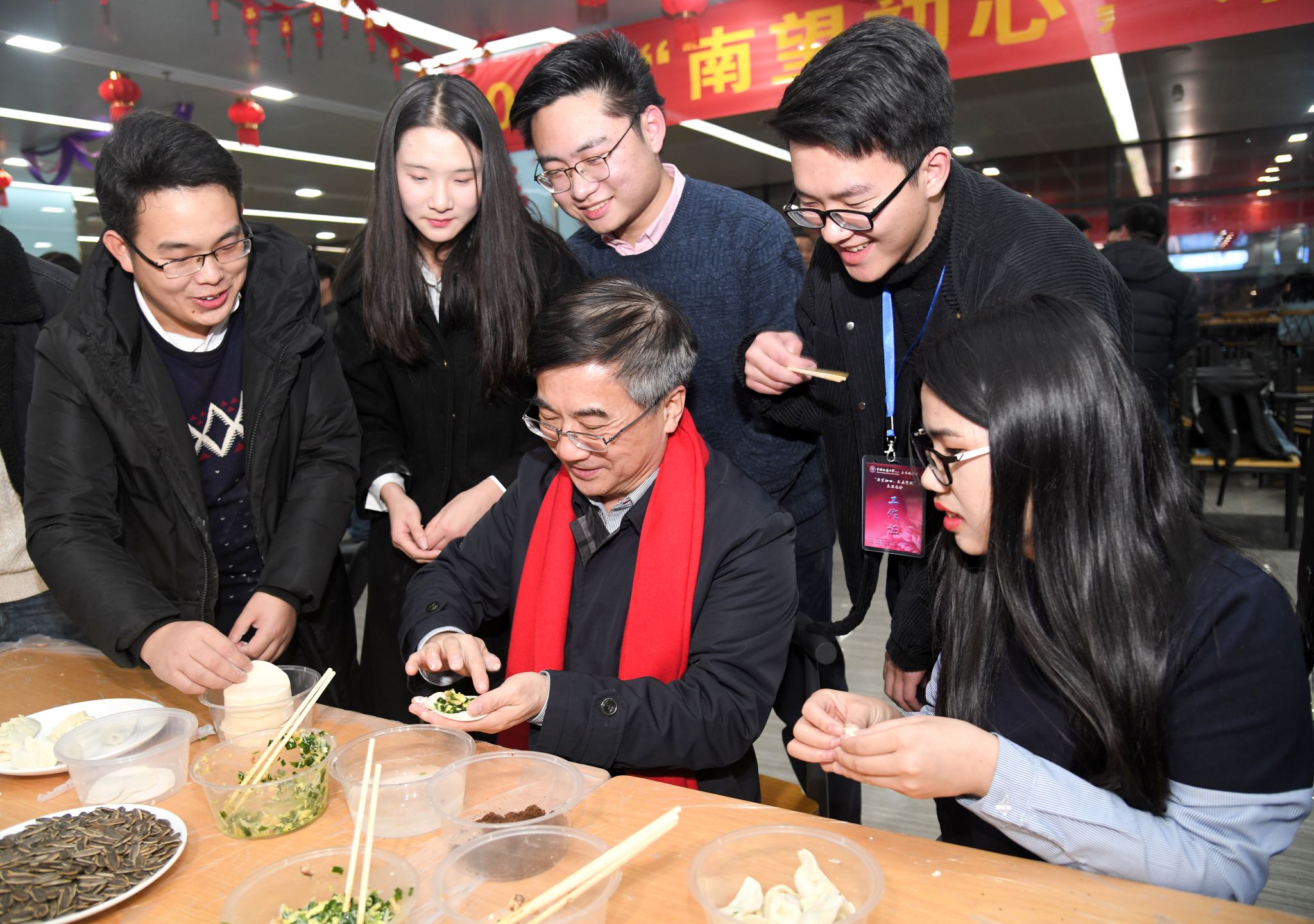 王焰新院士在元旦跨年夜与学生一起包饺子。菲律宾欧博游戏官网(武汉)党委宣传部供图