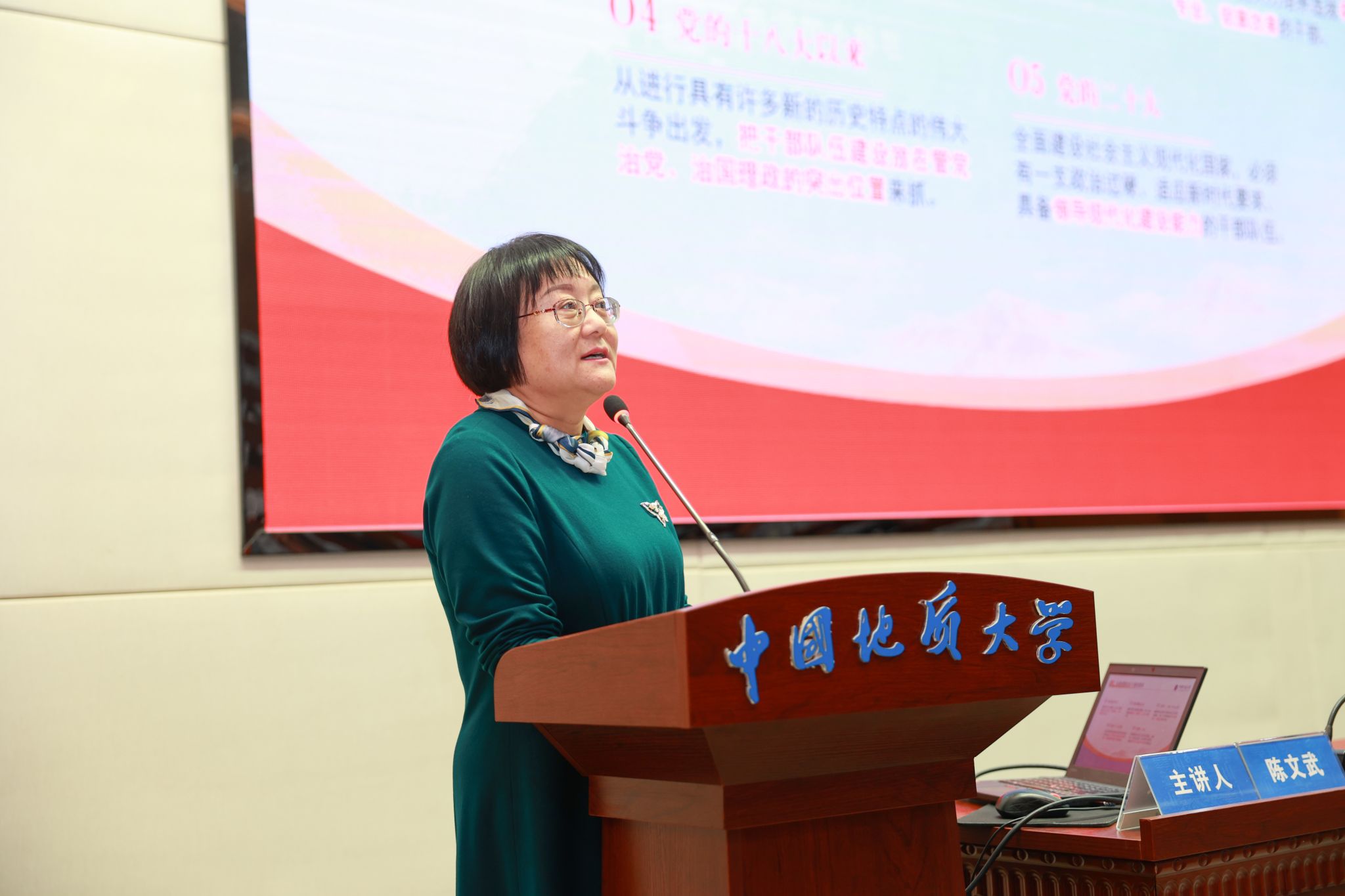 陈文武以《践行新时代好干部标准,自觉扣好“第一粒扣子”》为题作报告。她从不同时期党对干部的要求出发,阐述了党的干部工作所取得的成果,结合习近平总书记关于干部工作的重要论述,深入剖析新时代好干部标准和必备素质,深度解读学校十三次党代会对于干部工作的具体要求。她希望,广大干部要努力锤炼七种能力,做政治过硬的明白人、品德高尚的清白人、改革发展的领头人、高效治理的推动者、良好生态的营造者,为加快建设地球科学领域国际知名研究型大学、不断谱写学校事业高质量发展的新篇章而努力奋斗。