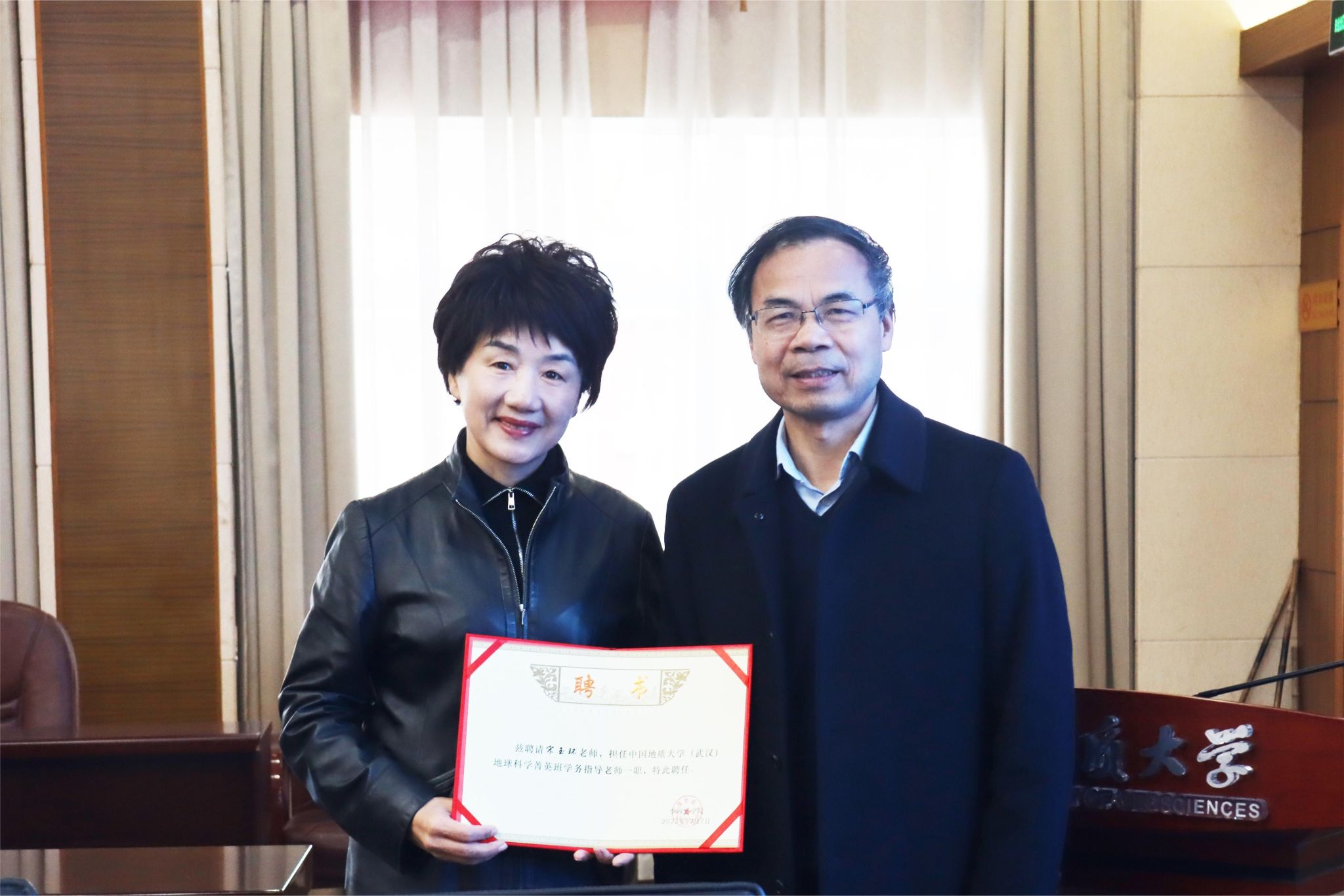 谢树成院士(右)向学务指导老师颁发聘书