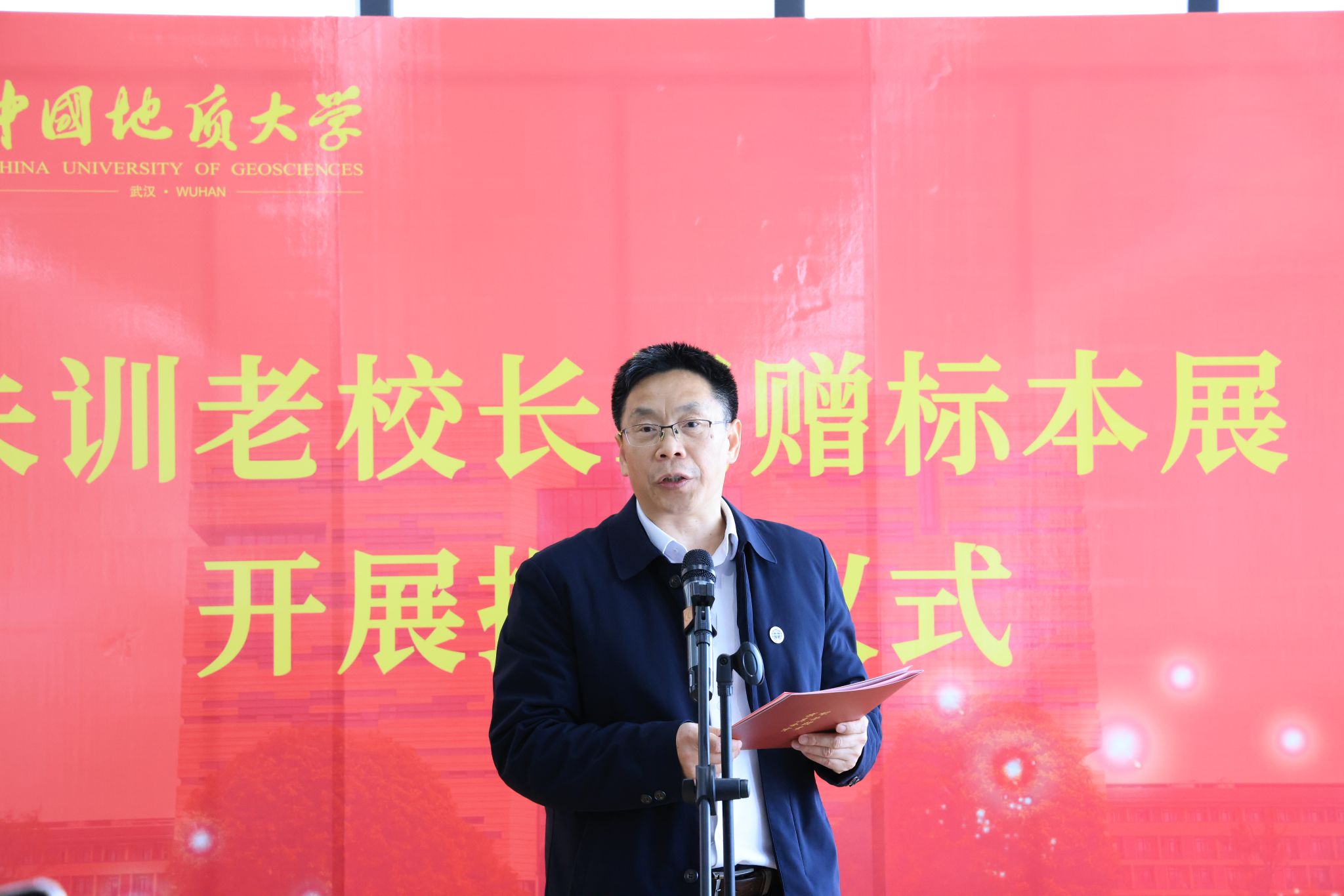 朱宇江宣读了朱训老校长的书面致辞。朱训老校长表示,这些标本代表着他大半个世纪地质地矿过程中留下的历史痕迹,同时也是他探宝生涯和国际交流谋求合作的见证,是传承地质文化历史的一种方式。