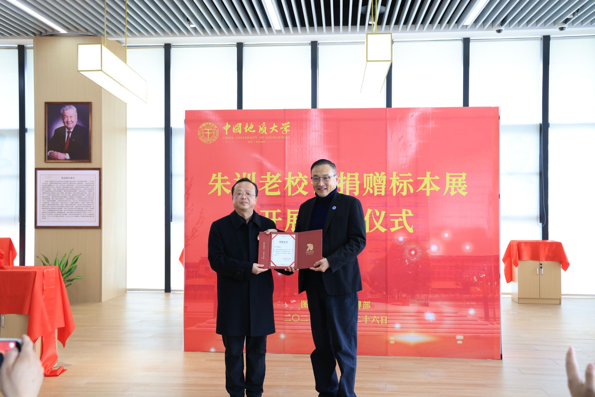 地大新闻网讯(通讯员 曾思红 徐燕 摄影 焦思勤 朱靖安 丁洪宇)12月26日,“朱训老校长捐赠标本展”在未来图书馆“朱训书屋”开展。朱训长子朱宇江,中国科协科普研究所原副所长王玉平研究员,校党委副书记王甫,相关单位负责人及师生代表参加开展揭幕仪式。图书档案与文博部党委书记邓云涛主持开展仪式。