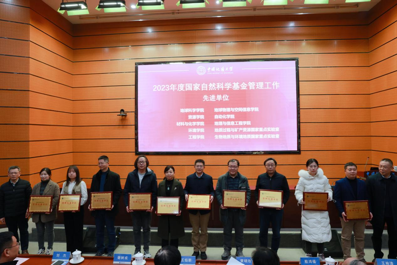 会上,校领导为2023年度国家自然科学基金管理先进单位、2023年度国家社会科学基金管理先进单位、2021—2022年度科普工作先进单位获奖单位颁奖。