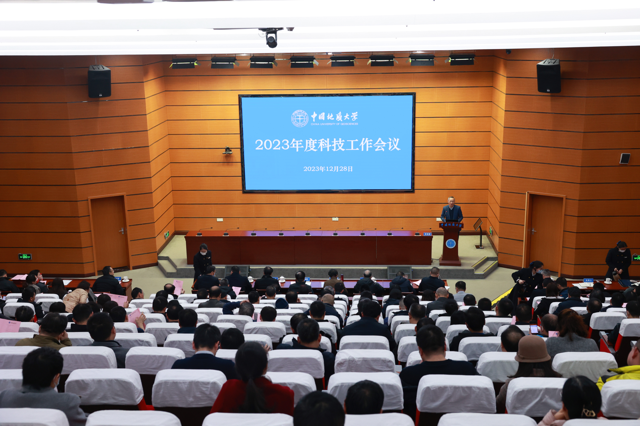 地大新闻网讯(通讯员 顾刚 摄影 焦思勤)12月28日,欧博2023年度科技工作会议举行。在校校领导、院士、党委常委、校长助理、各教学科研单位负责人、相关管理和服务单位负责人及教师代表参加会议。科学技术发展院常务副院长胡祥云主持。