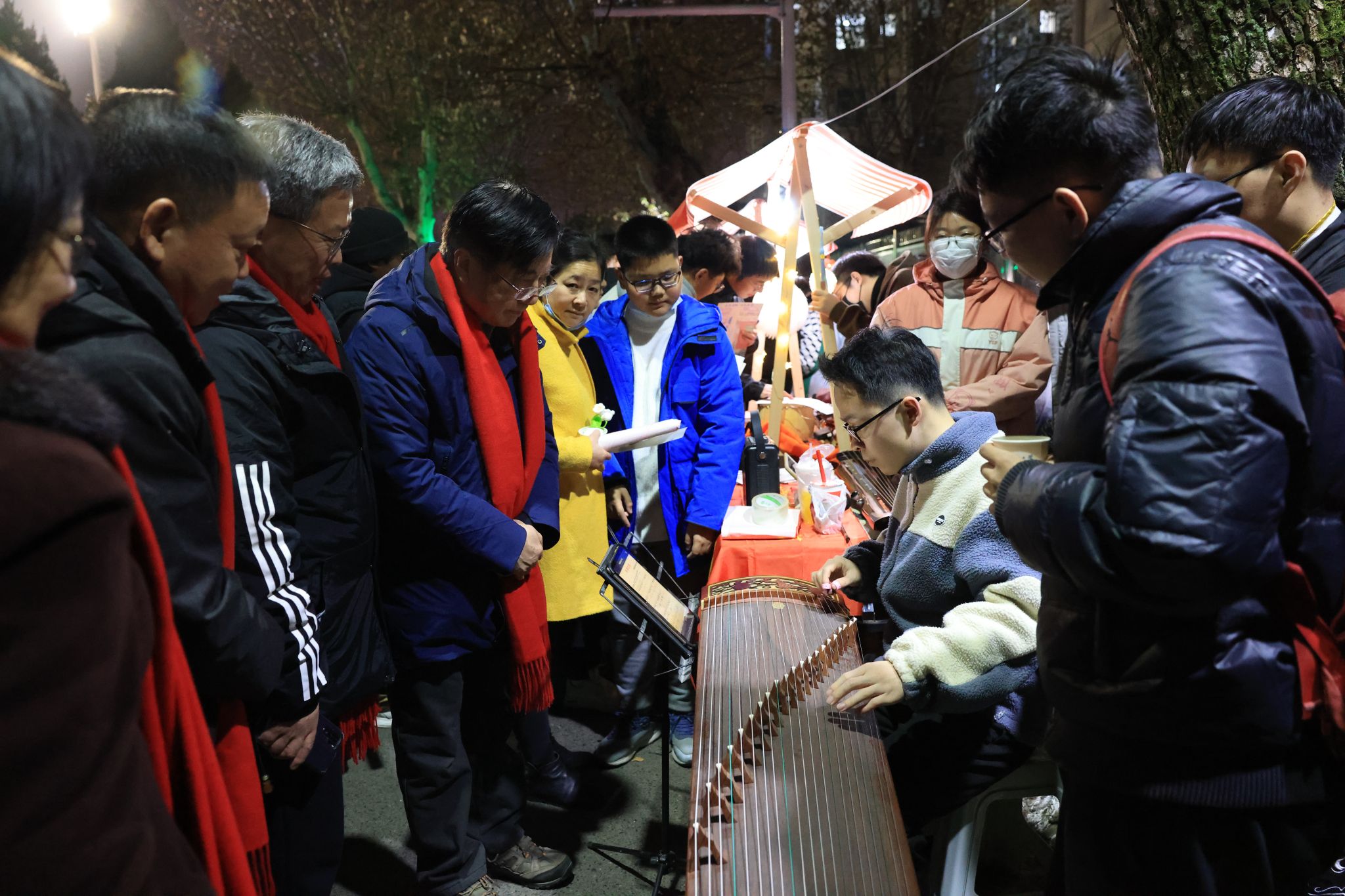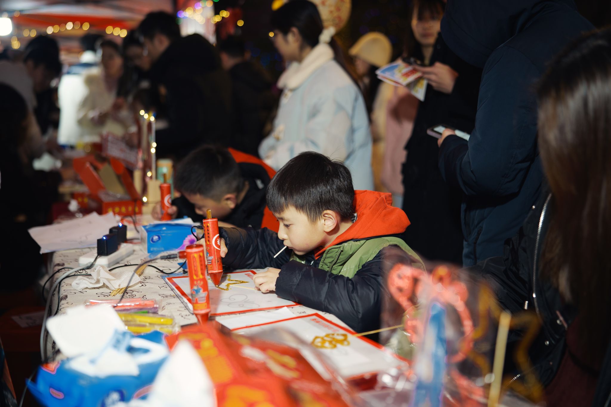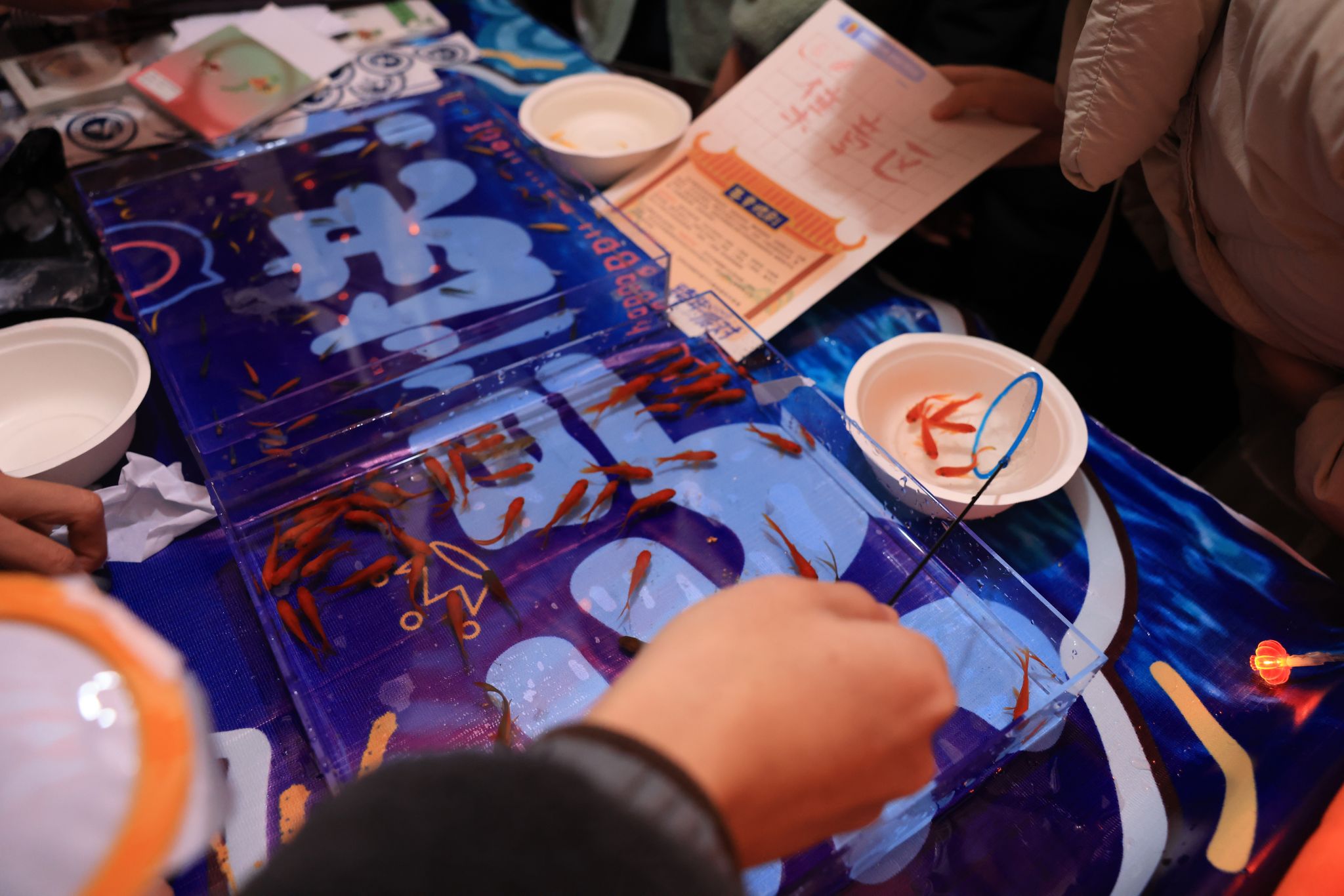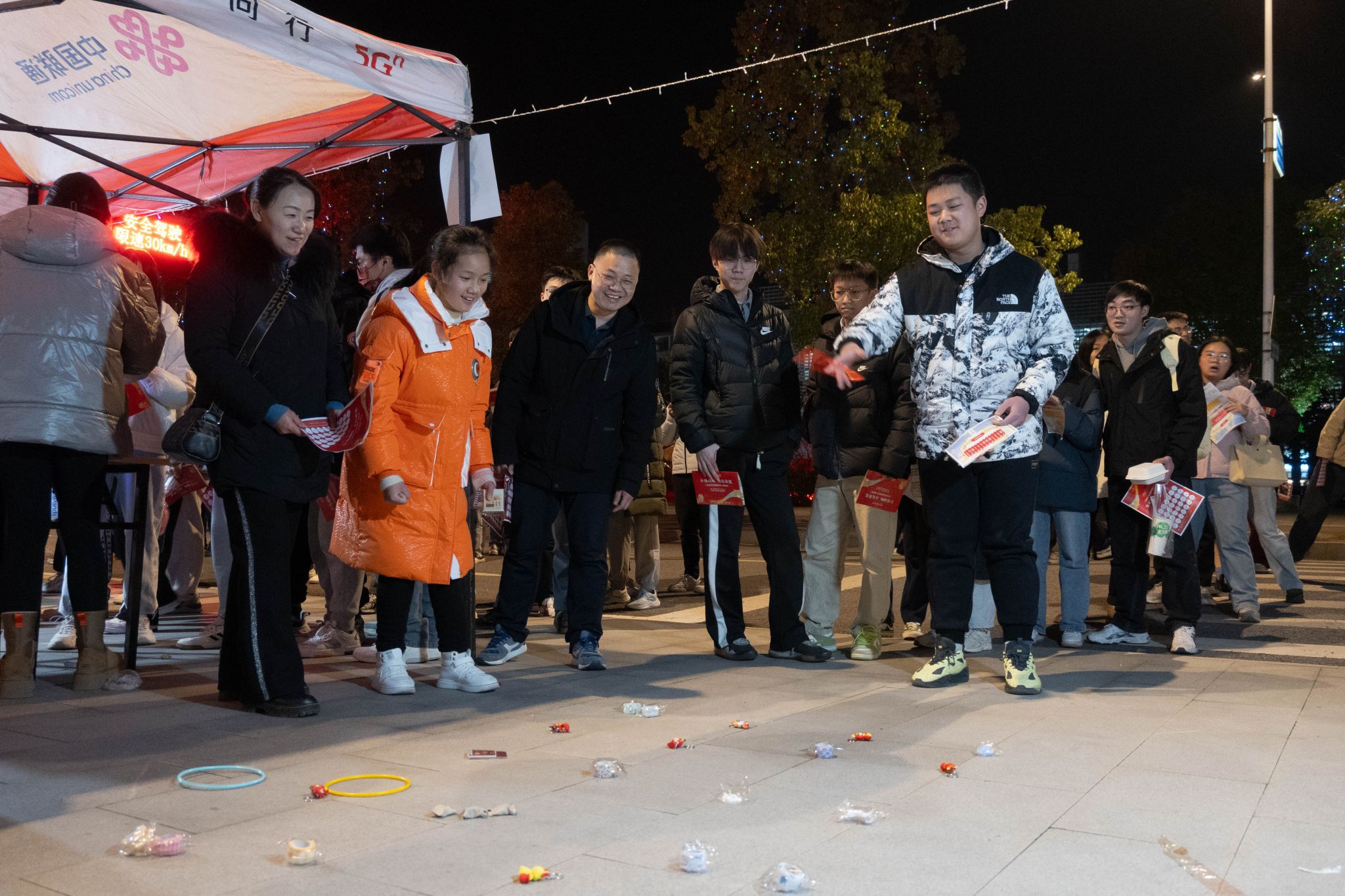 未来城校区游园嘉年华活动共有22个摊位,分为游戏区和体验区。游戏区内,各学院师生奇思妙想,将专业特色融入趣味小游戏中,如环境学院的“新年气象”环节让参与者通过DIY气象瓶预知天气情况;计算机学院设置“网络空间安全防线”小游戏,让参与者筑牢网络安全意识。体验区内设置了丰富多彩的年俗活动,如“纸花争艳”“糖画小铺”“元旦猜灯谜”“套圈”“投壶”等活动,让参与者在民俗活动中体验浓厚的新年氛围。
