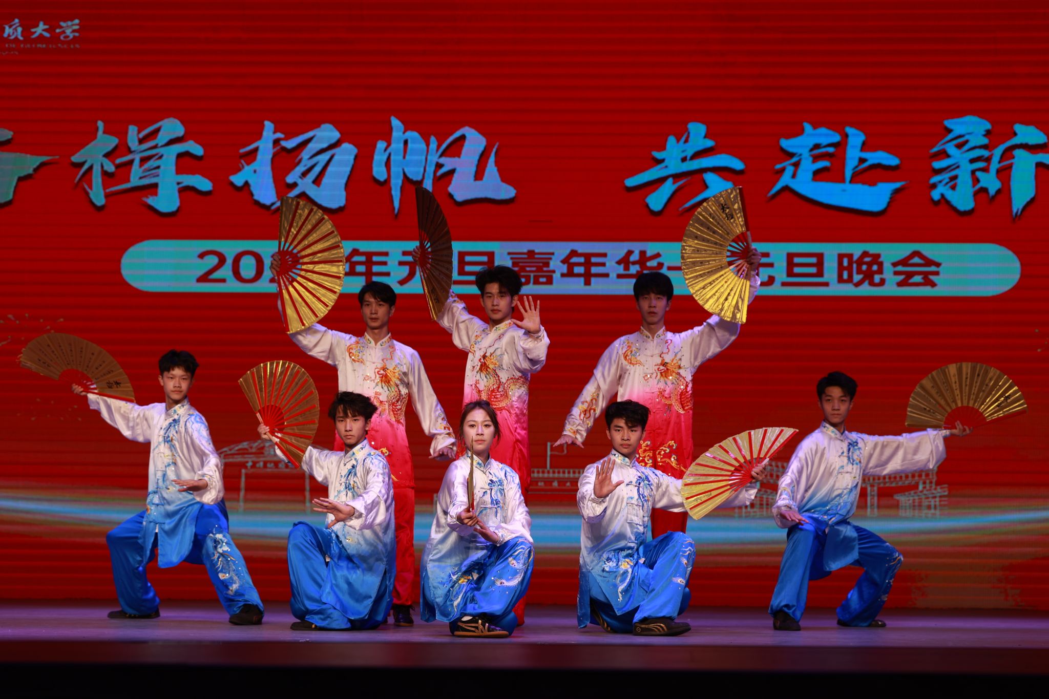 合唱团演唱的《雪花的快乐》营造了一片欢乐气氛,武术队带来的太极拳、太极扇、九节鞭令场内欢呼不断,赞叹不绝于耳;歌曲串烧《刻在我心底的名字》《交换余生》令人在回忆中泛起涟漪,灯光摇曳下,云雾缭绕间的《丽人行》又让人久久不愿醒来,沉溺于盛唐的故事。广播台配音作品《酷格们的一天》,在欢乐的调侃中,展示着CUGers的日常生活。