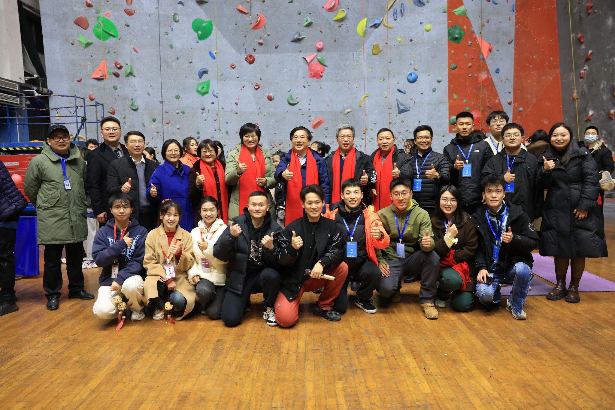 在南望山西区体育馆和攀岩馆,体育嘉年华活动热火朝天。游戏项目兼具趣味性和竞技性,有天旋地转、飞盘高尔夫、摸石头过河等8个趣味游戏项目,也有勇攀高峰和极限挑战。师生们在体育活动中享受乐趣、增强体质、健全人格、锤炼意志,以青春朝气迎接崭新的一年。