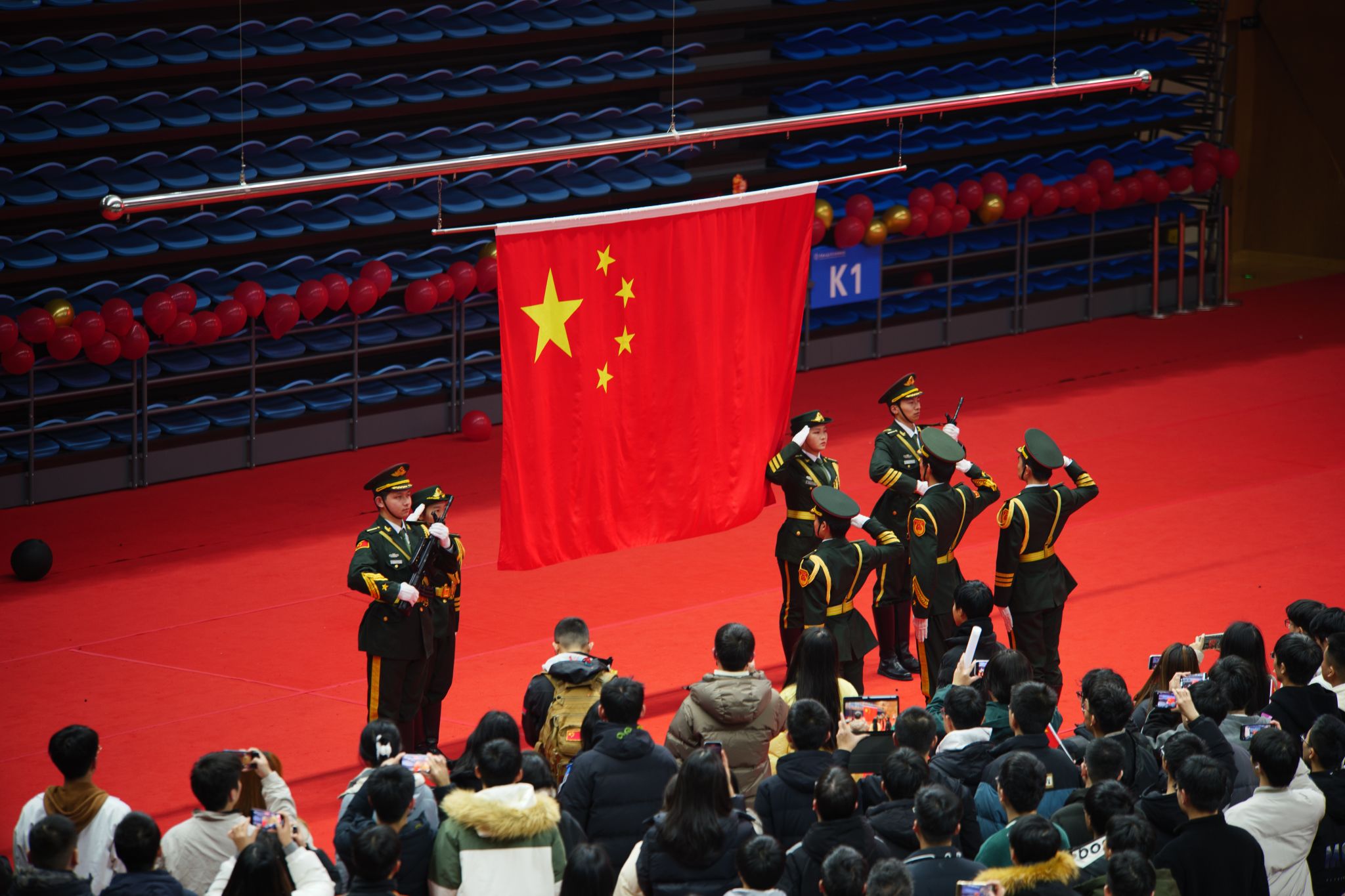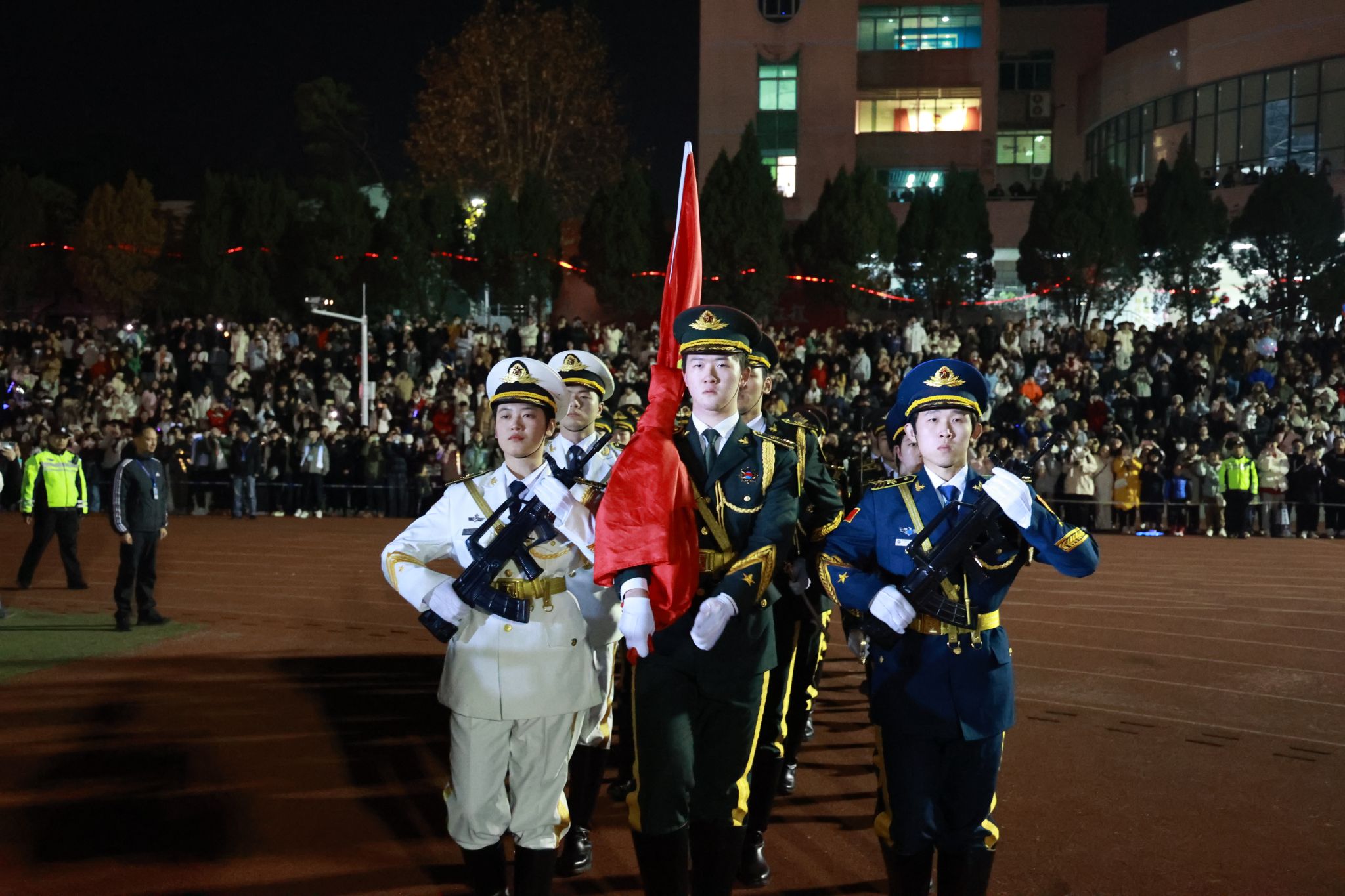国旗班迈着铿锵的步伐走向升旗台,伴随着《义勇军进行曲》,两校区同时举行升国旗仪式,在大家的注目下,五星红旗冉冉升起,全体师生共同祝愿地大2024年更加精彩。
