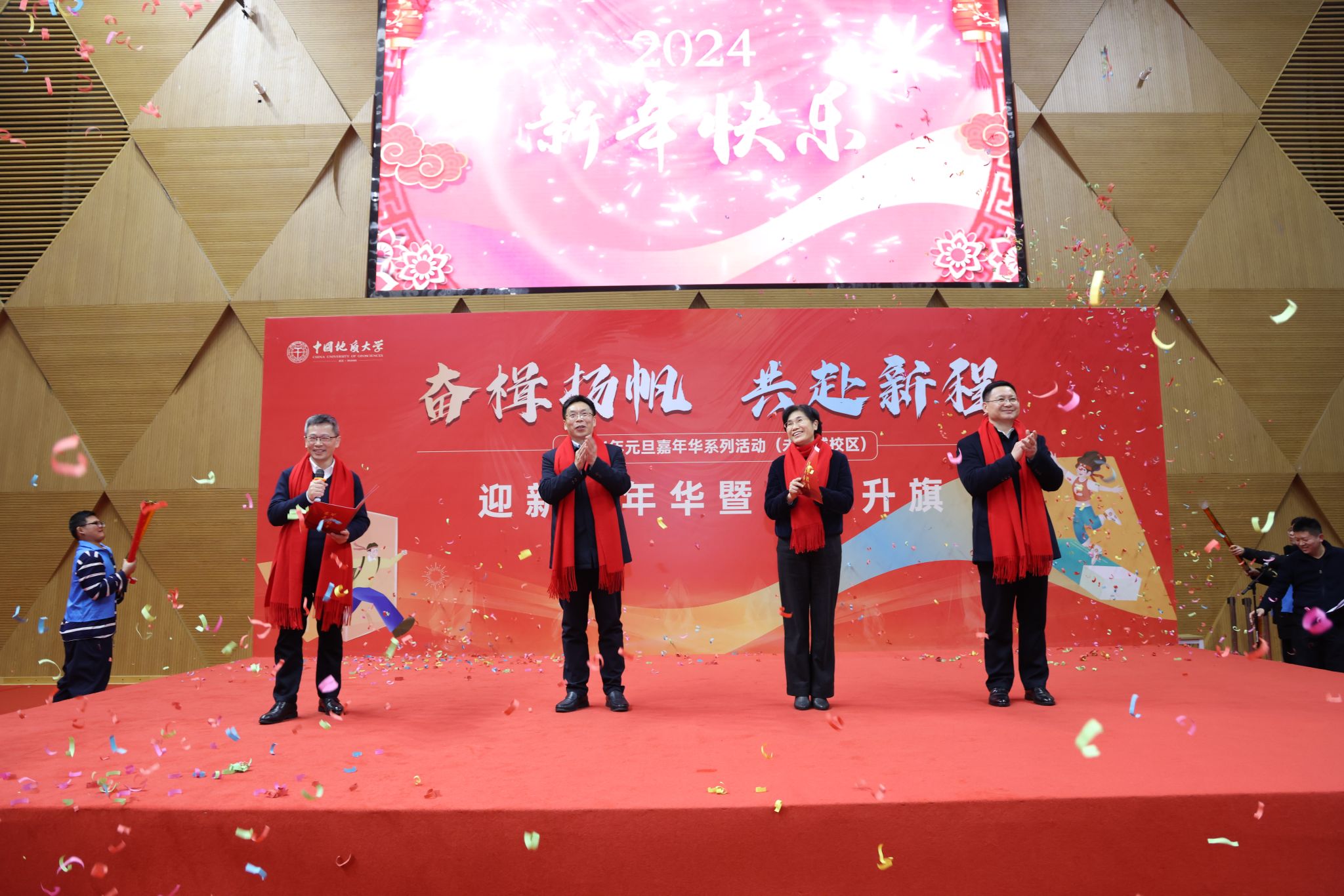 校党委书记黄晓玫、校长王焰新分别在未来城校区、南望山校区发表热情洋溢的新年讲话,为全体师生和伟大祖国送上最美好的祝福。他们表示,时隔3年,地大人再次在新年的钟声敲响之际相聚在一起,举行隆重庄严的升国旗仪式,以地大特有的方式共同迎接新年的到来。过去的2023年,是全面贯彻党的二十大精神的开局之年,是学校站在办学70年新起点上接续奋斗的关键之年。学校胜利召开第十三次党代会,各项事业发展迈上新台阶,开启了加快建设地球科学领域国际知名研究型大学的新征程。新的一年,希望全校师生团结拼搏、锐意进取,为加快建设地球科学领域国际知名研究型大学作出更大贡献。