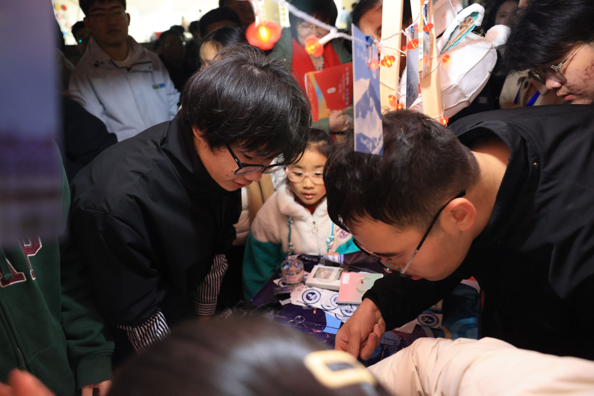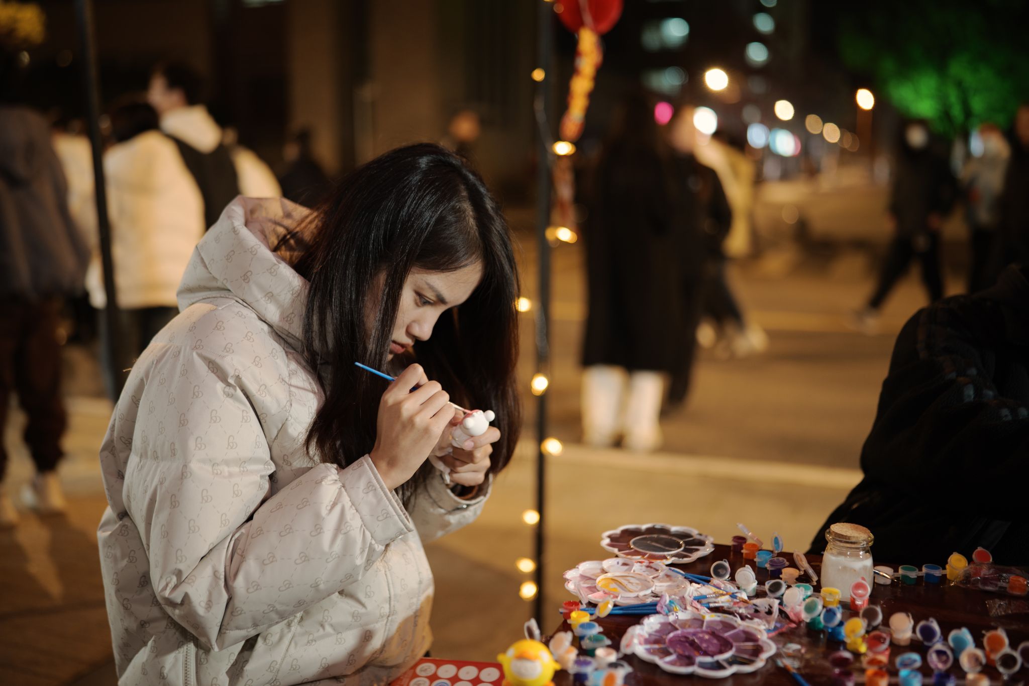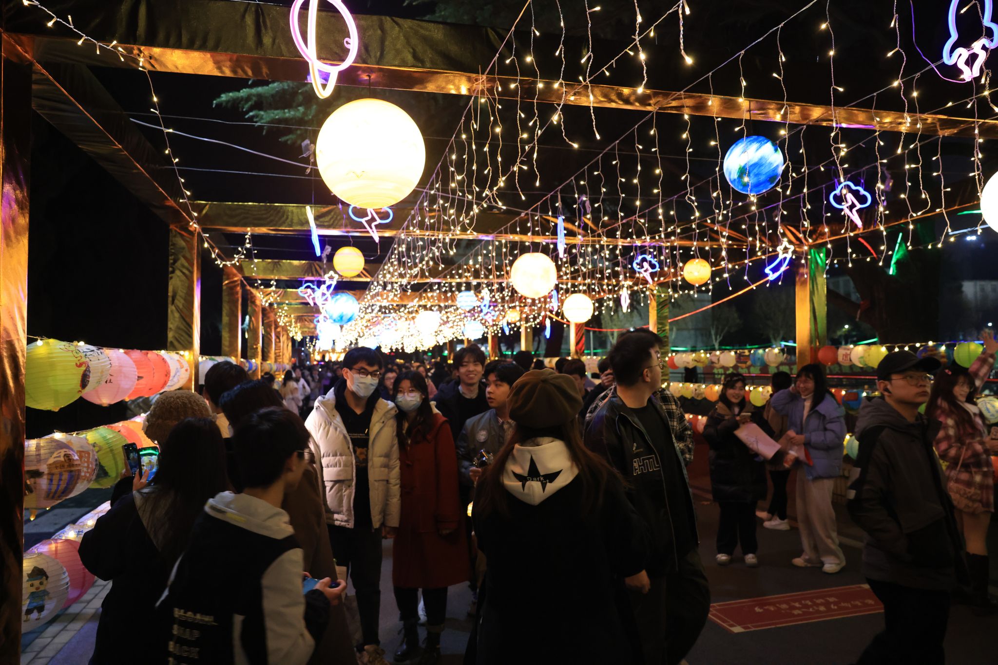 在南望山校区,穿过彩灯和花灯交相闪烁的小路,步入弘毅路、西三路,眼前是热闹欢乐的景象。七个区域,各展风采,52个摊位各具特色,让人流连忘返。