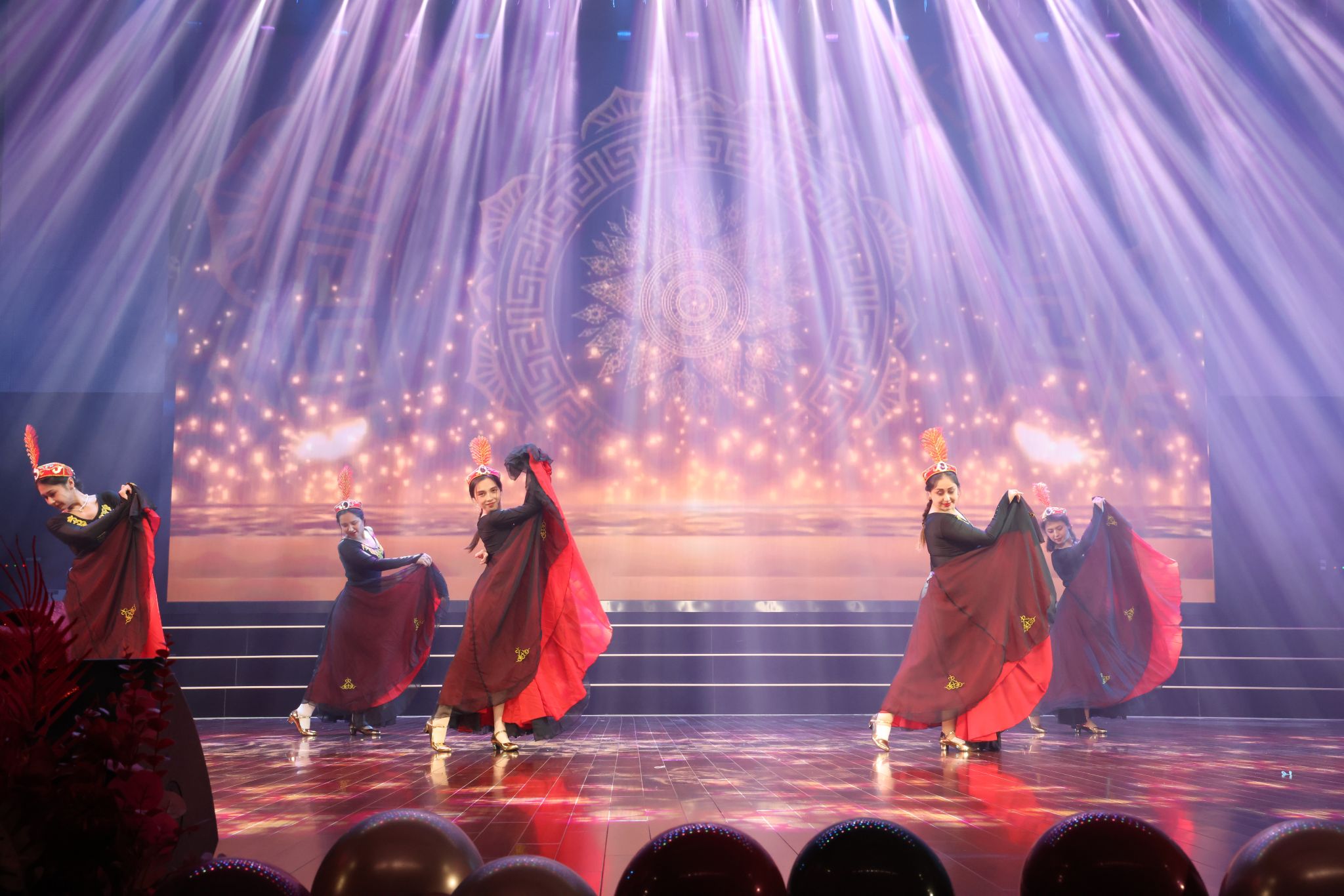 模特队身着传统服饰款款走来,展示着《东方盛世》的魅力;军乐团以激昂的《帝国进行曲》向观众展现着未来的科幻可能;石榴籽民族文化社展示着多元民族的舞蹈和文化;主持人社以爱国青年的跨古今对话讲述着一代代青年挺身而出,拯救中华的故事。