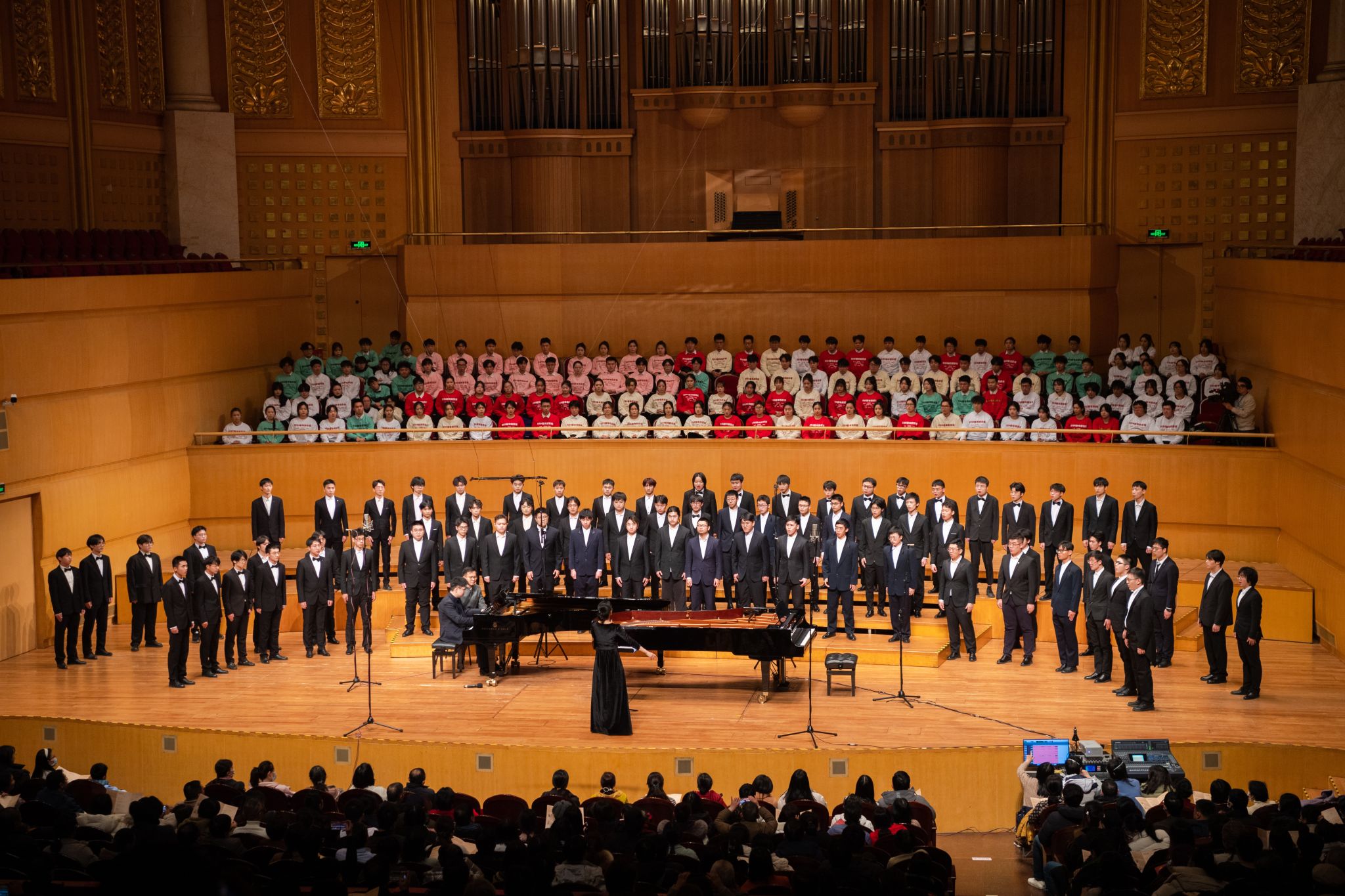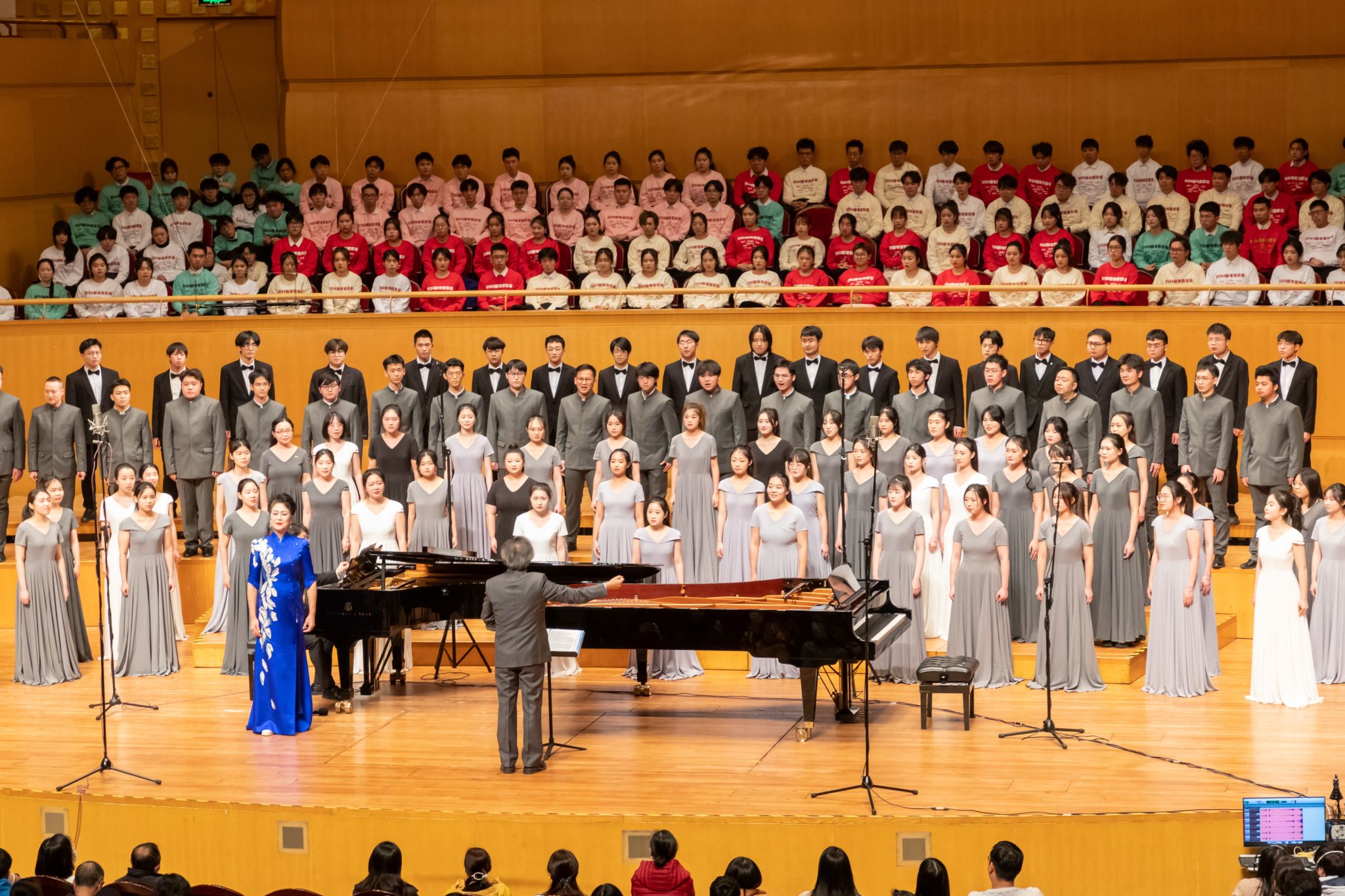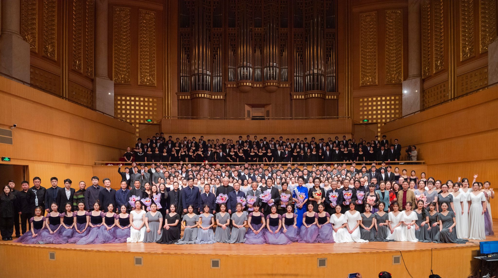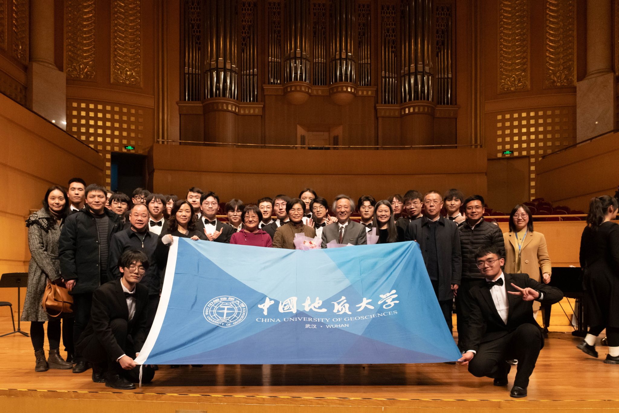 地大新闻网讯(通讯员 赵安然 刘明辉 摄影 齐一凡)近日,“黄河大合唱:2024年新年音乐会”在武汉琴台音乐厅上演,欧博第五元素合唱团20名同学受邀参演。本场音乐会由华中师范大学主办,欧博和清华大学、中南民族大学、武汉理工大学、汉江师范学院、武汉传媒学院、湖北理工学院等7所高校协办,11支合唱团共370余名演职人员参与演出。著名指挥家田晓宝教授担任艺术总监,著名歌唱家贺磊明、李秀英、余惠承、李初建、刘春喜担任独唱与领唱。欧博党委书记黄晓玫,党委副书记、纪委书记唐忠阳,党委常委、组织部部长陈文武受邀参加音乐会。