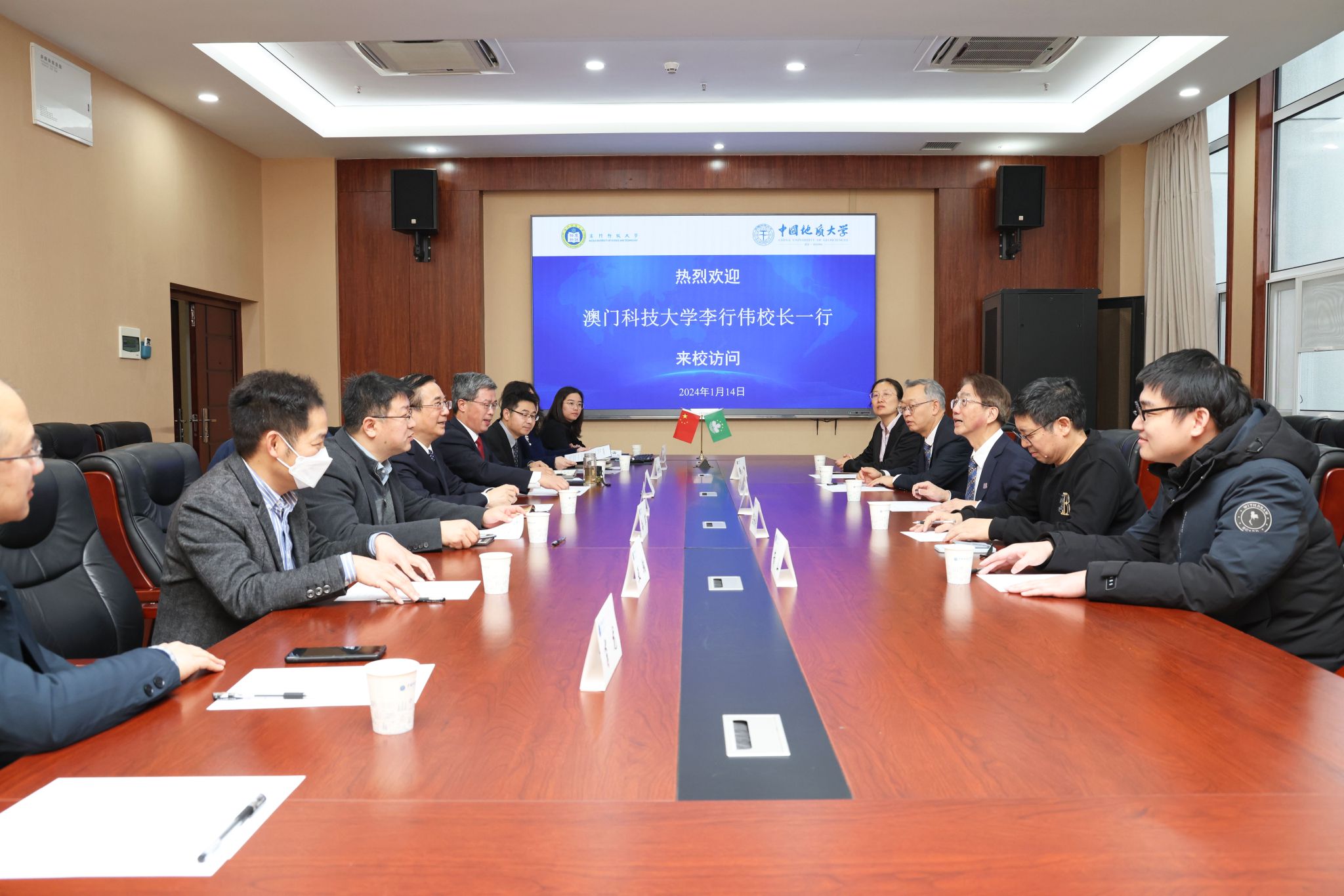 地大新闻网讯 (通讯员 张愫恒 摄影 孙彦钦)1月14日,澳门科技大学校长李行伟一行来校访问,举行合作协议签约仪式,并就两校未来合作议题进行座谈。欧博校长王焰新、副校长王华,双方相关单位代表出席签约仪式和座谈会。国际教育学院副院长范陆薇主持会议。