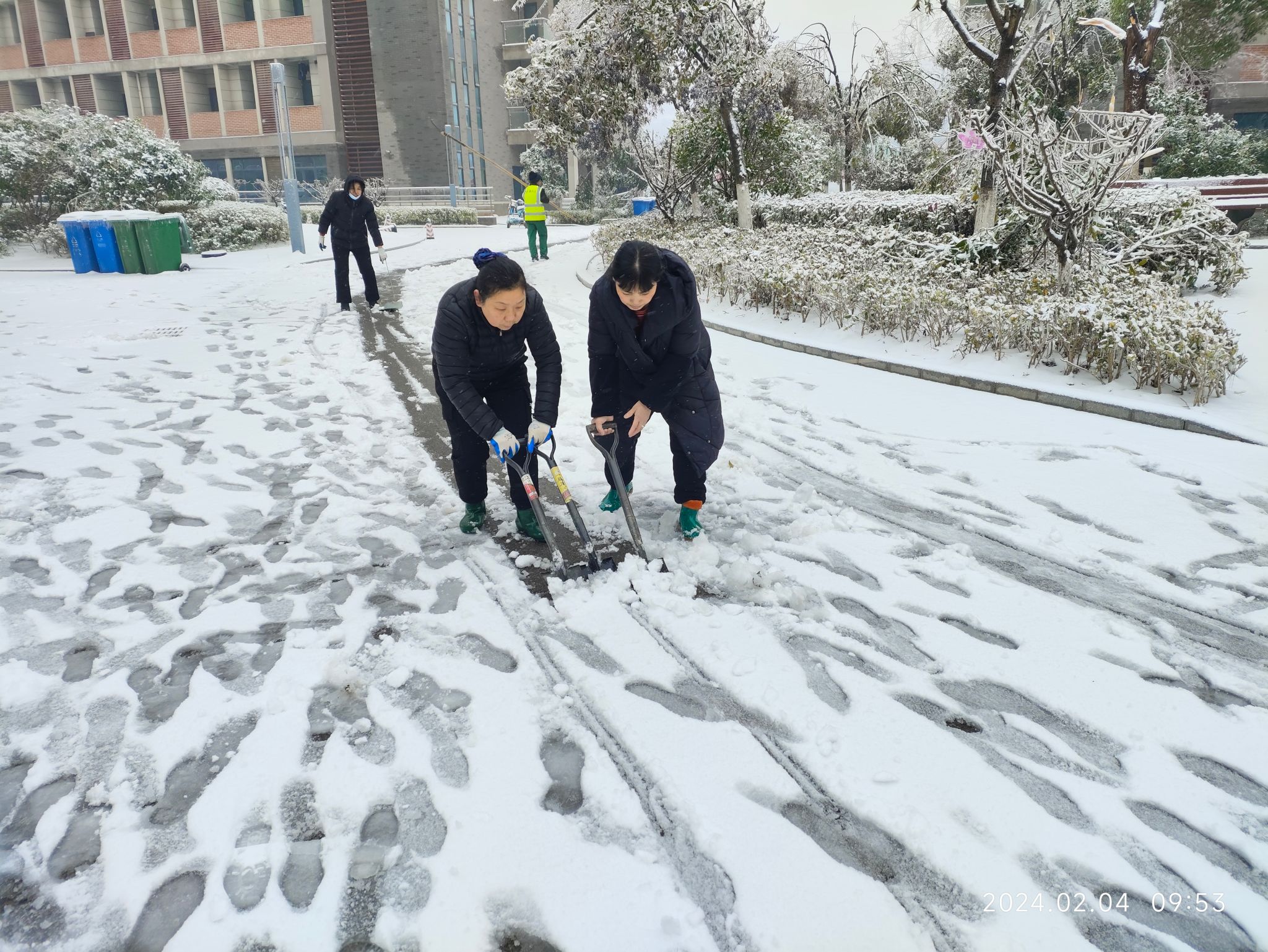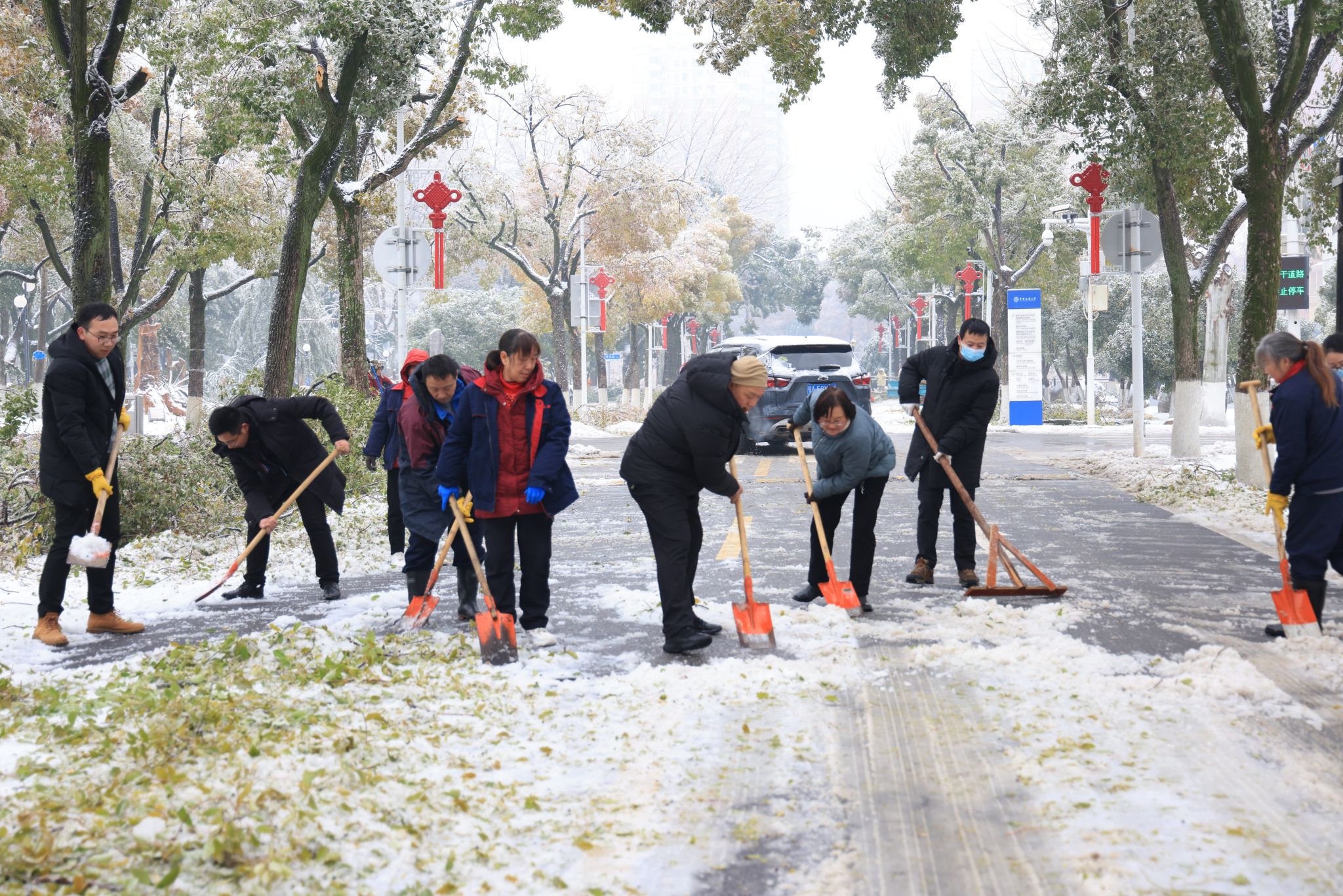为保障师生居民生命和财产安全,学校党委组织校园“先锋突击队”,在寒潮中逆行,扫雪除冰、清除路障筑起一道安全屏障,成为冬日校园最温暖的守护。