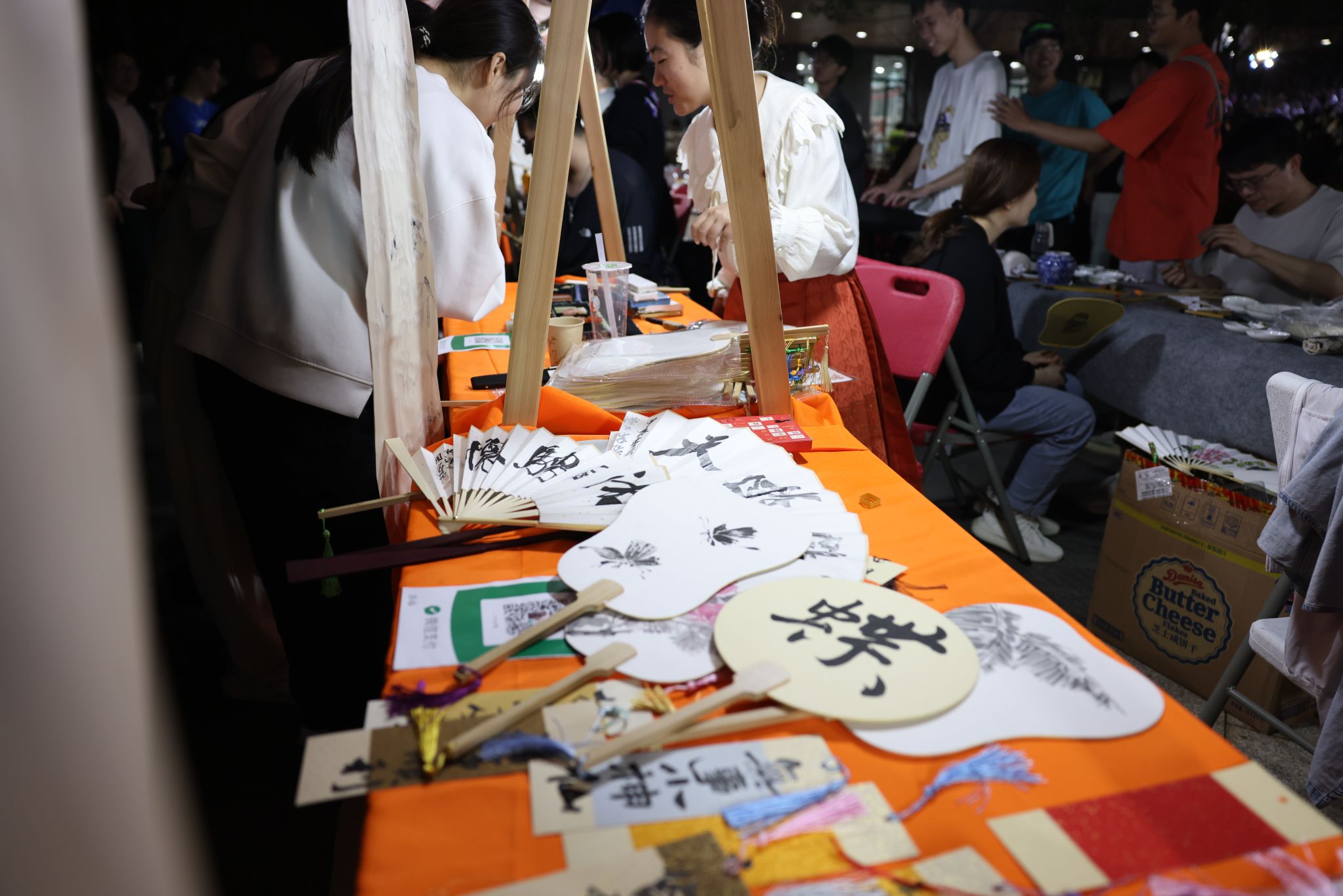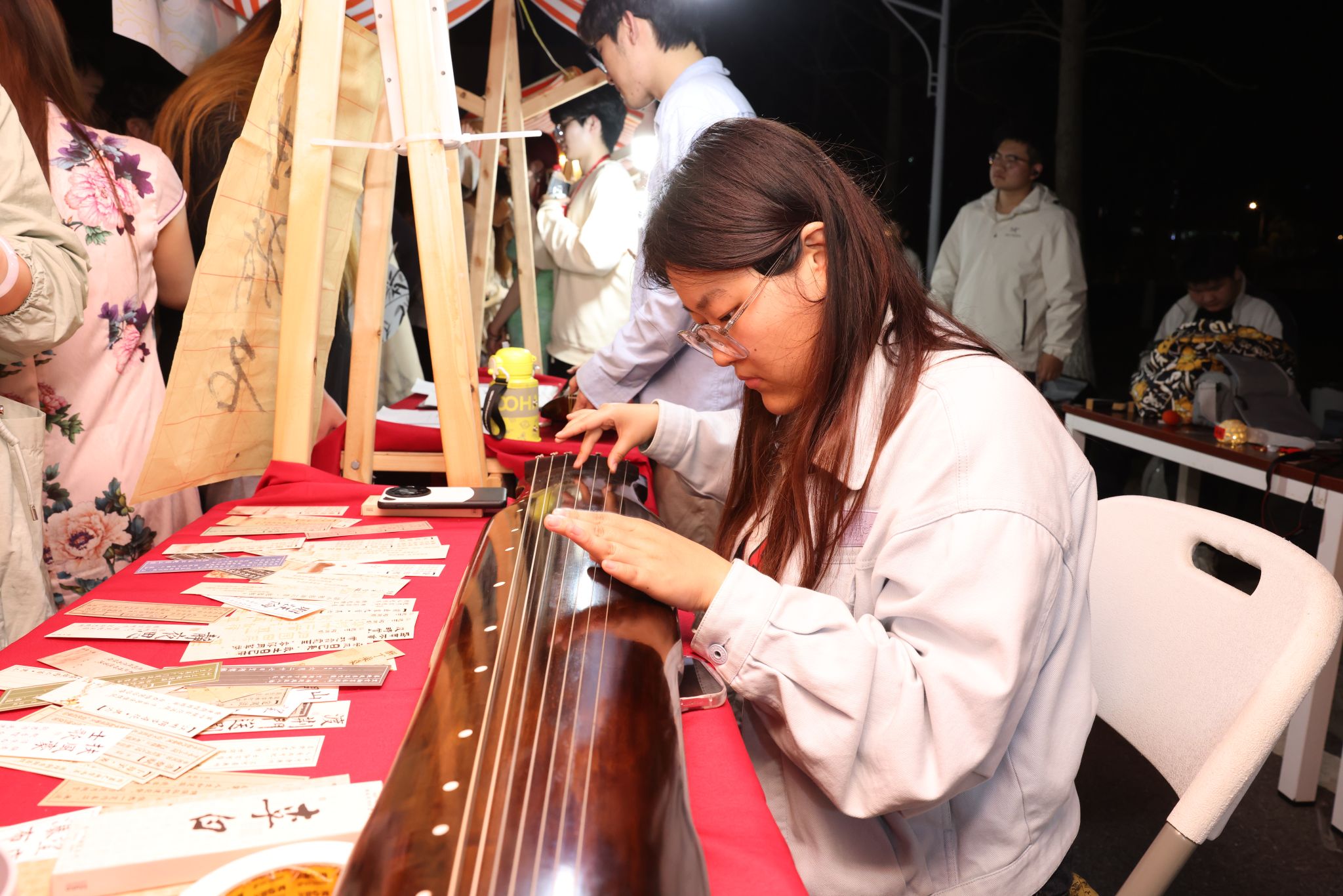 20余个社团精心筹备,饱含春日气息和文化韵味的游园活动趣味性十足、体验感满满:国风游园,投壶、竖蛋、飞花令等传统习俗项目热闹非凡,书法、篆刻、国画创作区域人头攒动,植物拓印、古琴体验、棋类挑战区域熙熙攘攘……