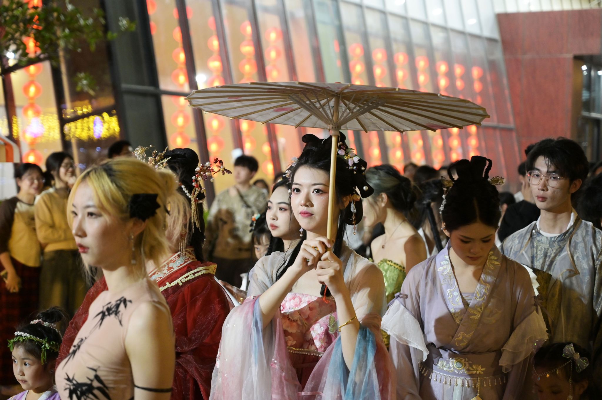 新增的“汉服巡游”环节,面向全校师生招募的50余名志愿者身着华服,手持花灯,款款而来,出场瞬间便点燃了现场的热情。“这是一抹穿越时空的惊艳,汉服文化作为一种独特的文化遗产,已经逐渐被大众所了解和喜爱,这是文化自信的具体体现。”汉服爱好者戴雅琪同学有感而发。