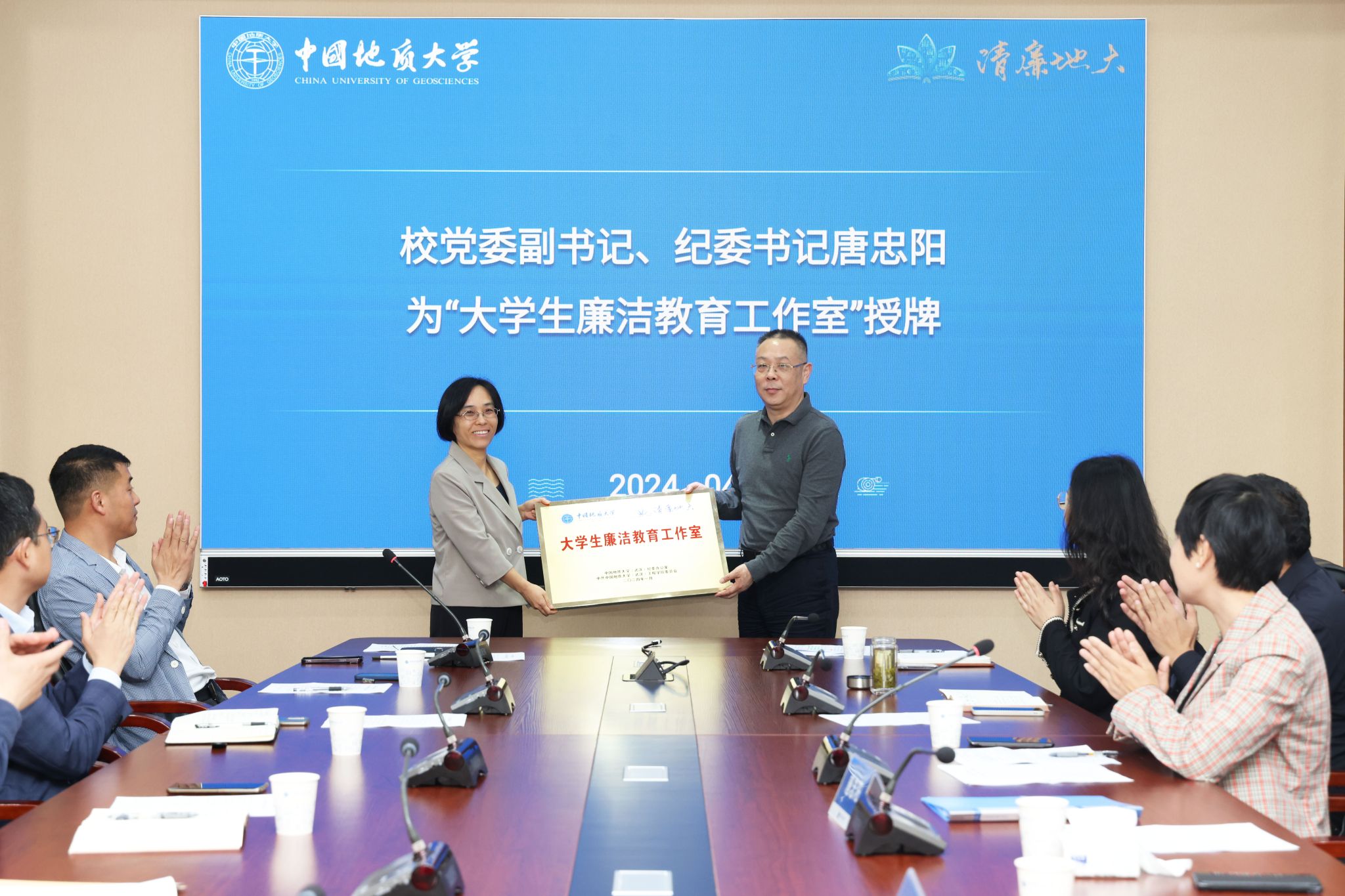 会上,唐忠阳为大学生廉洁教育工作室授牌。